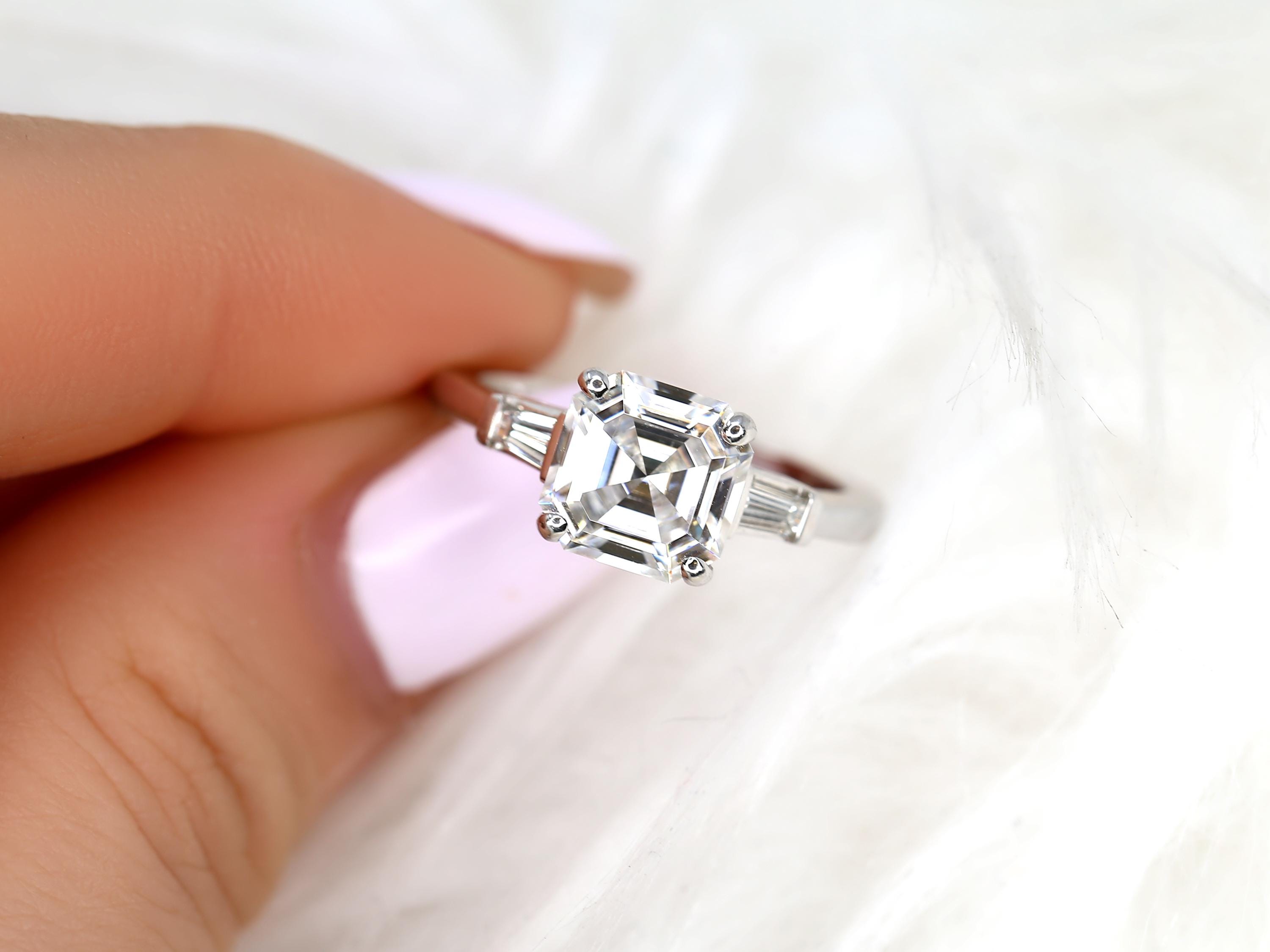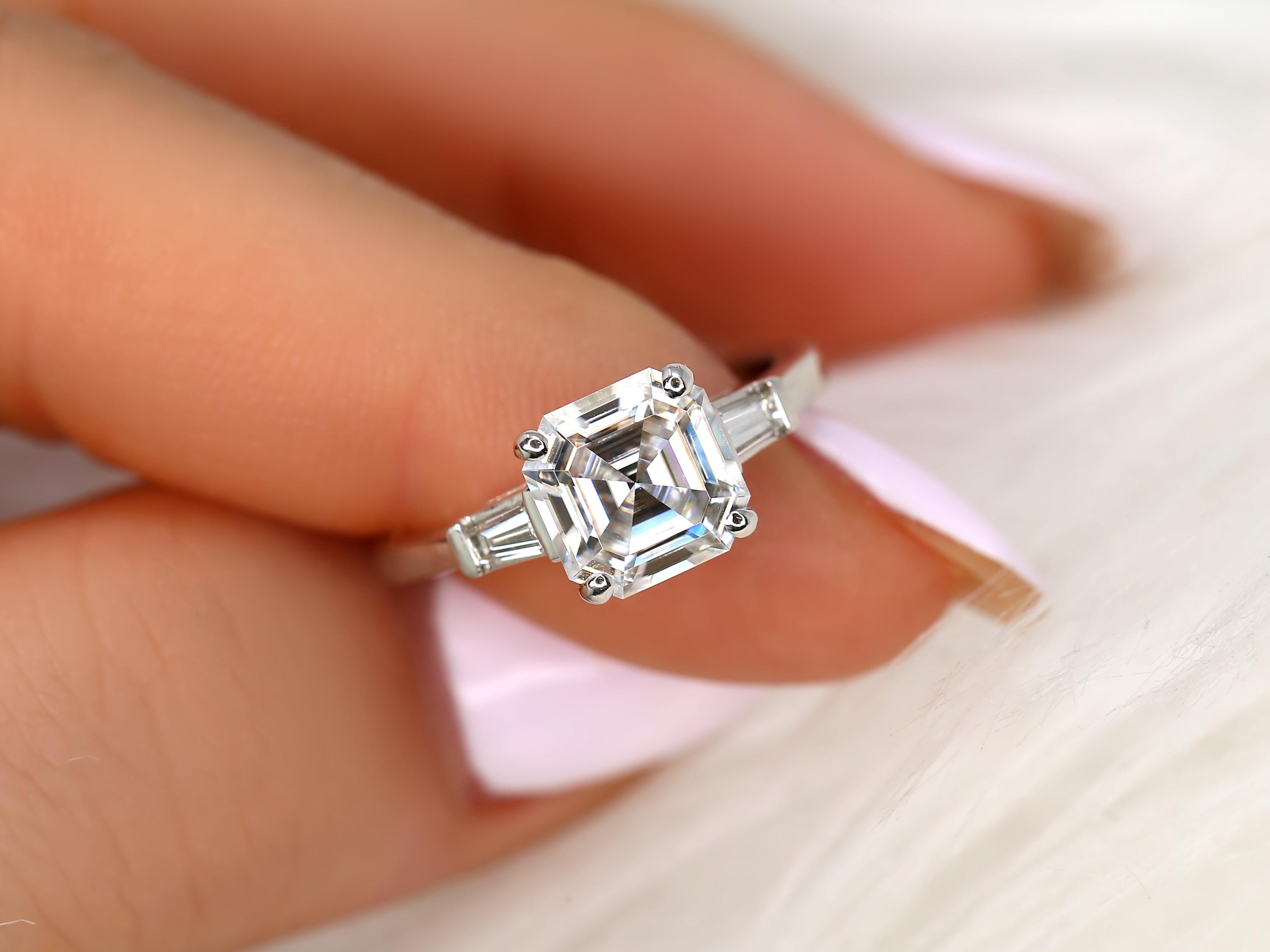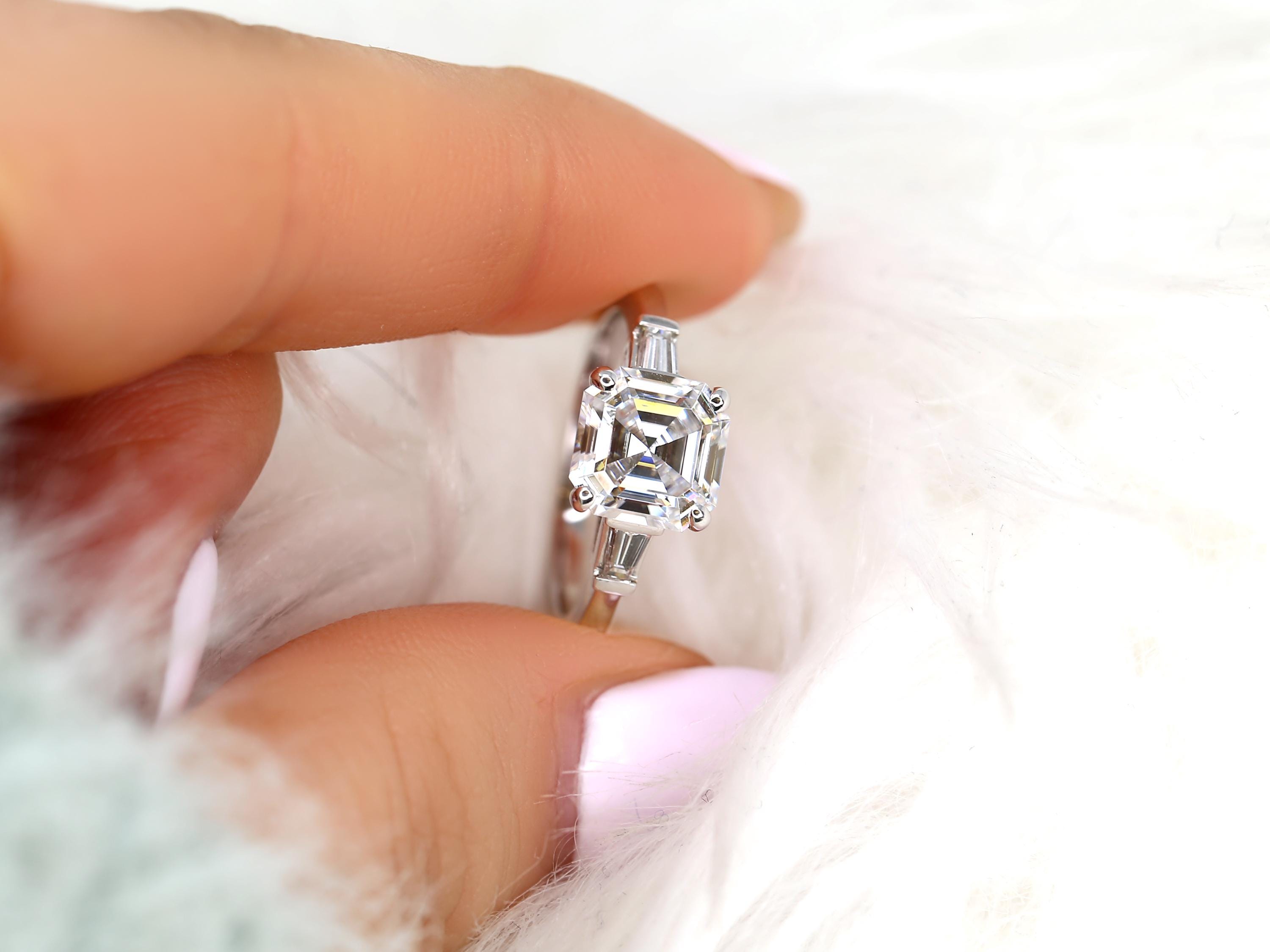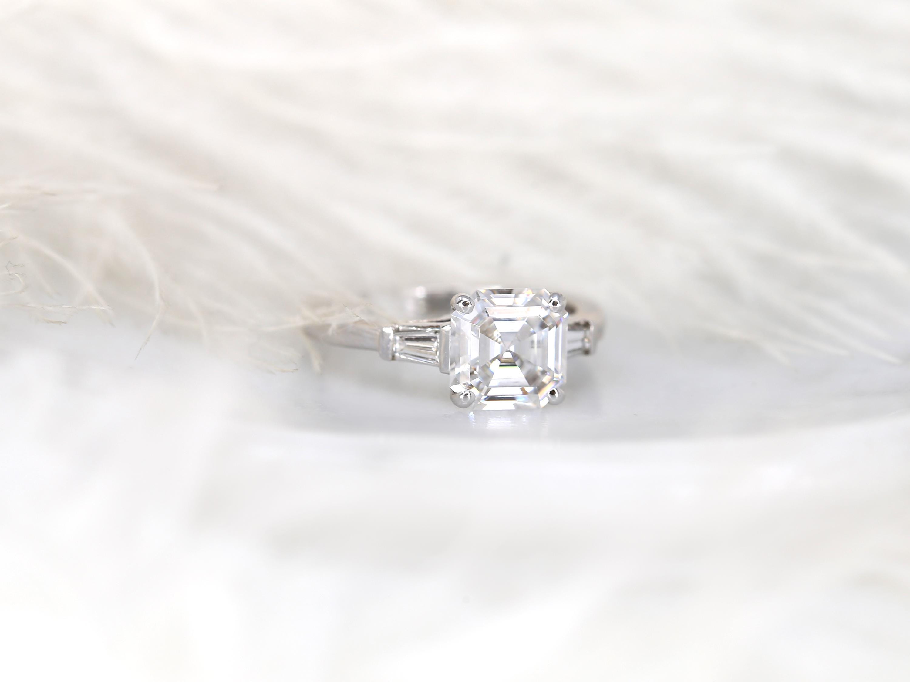 2.20ct Fae 8mm 14kt Colorless Moissanite Art Deco Engagement Ring,Asscher Cut Trilogy Ring,Asscher Three Stone Ring,Anniversary Ring