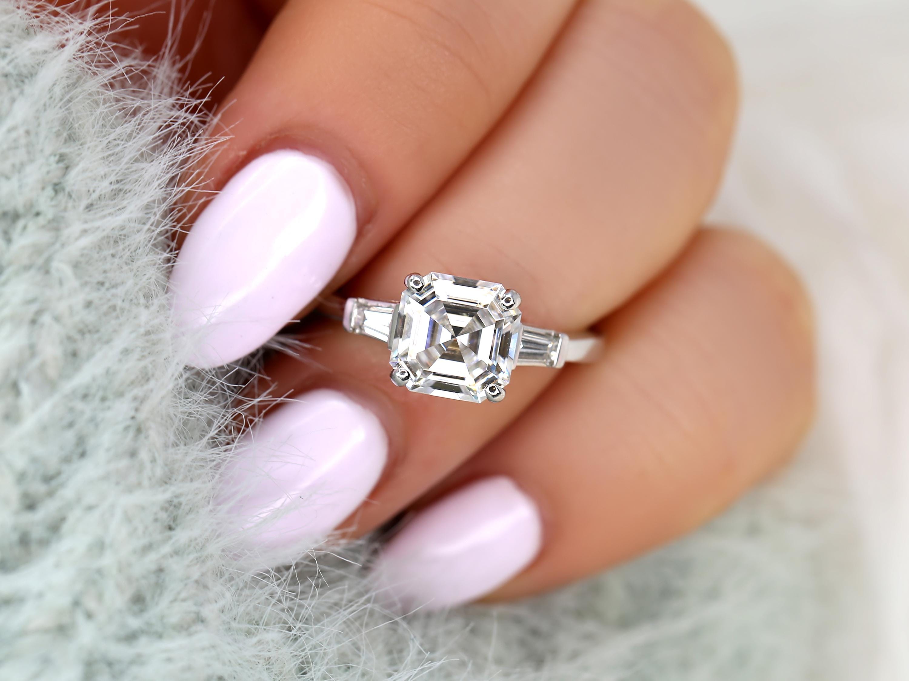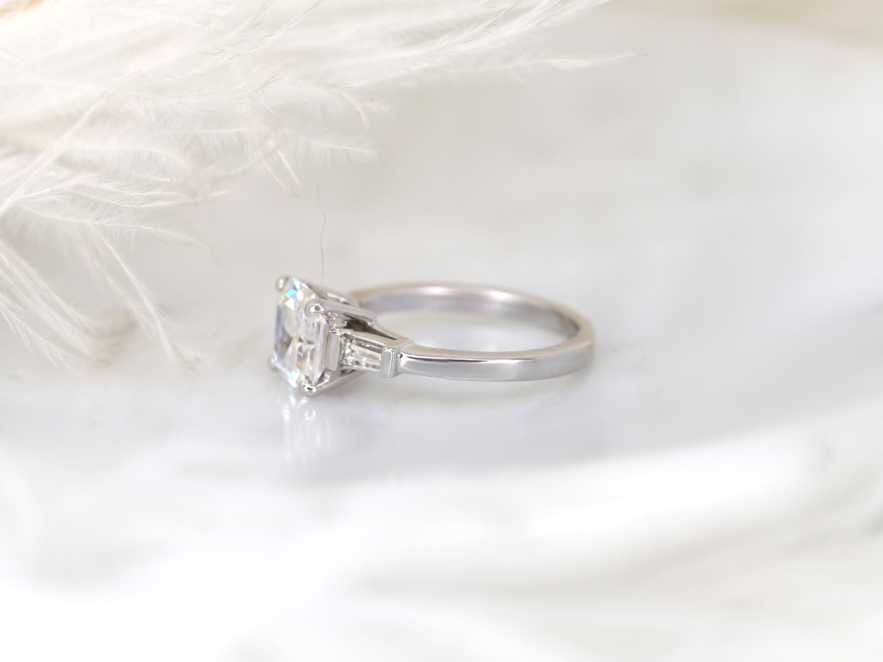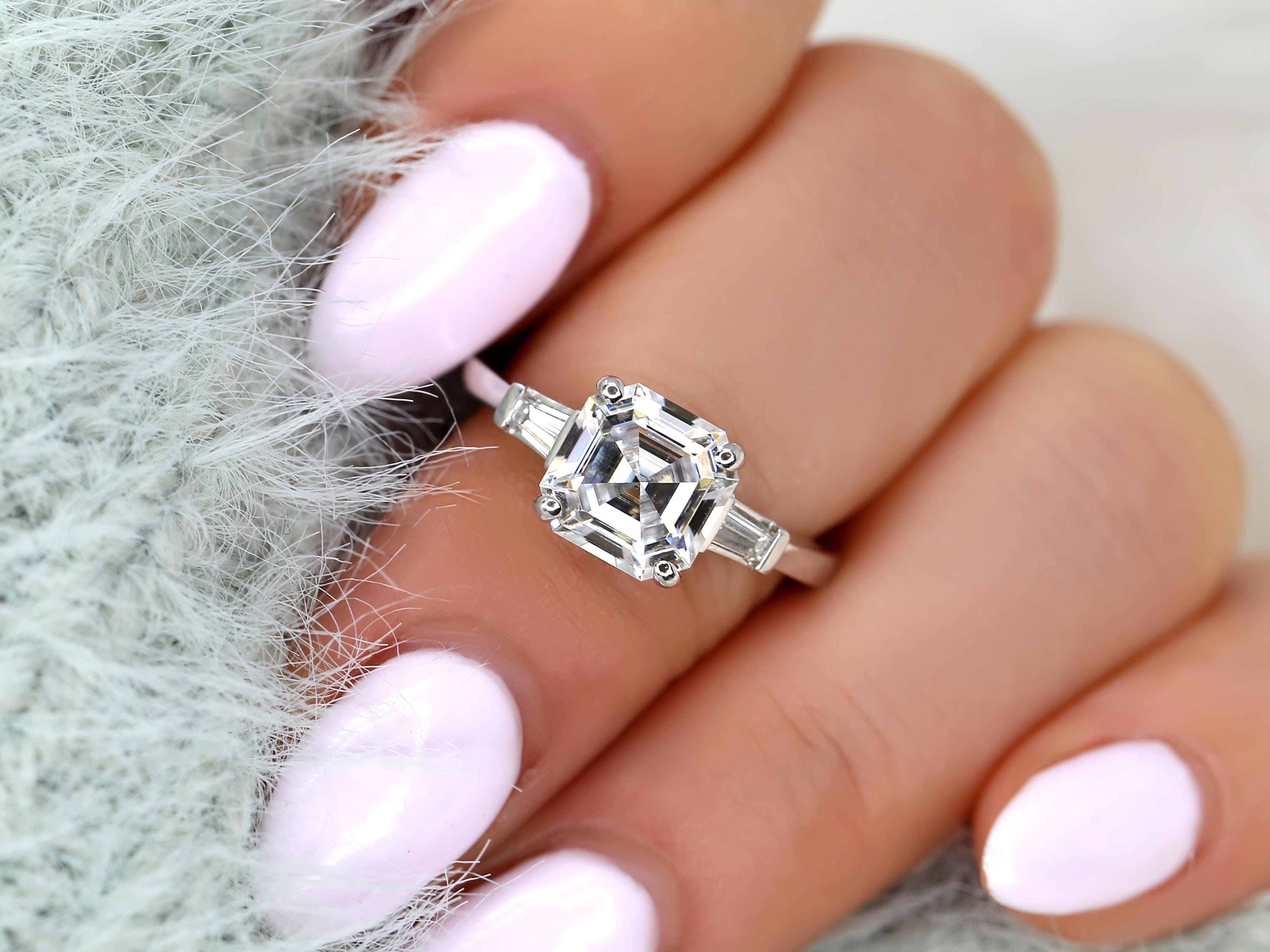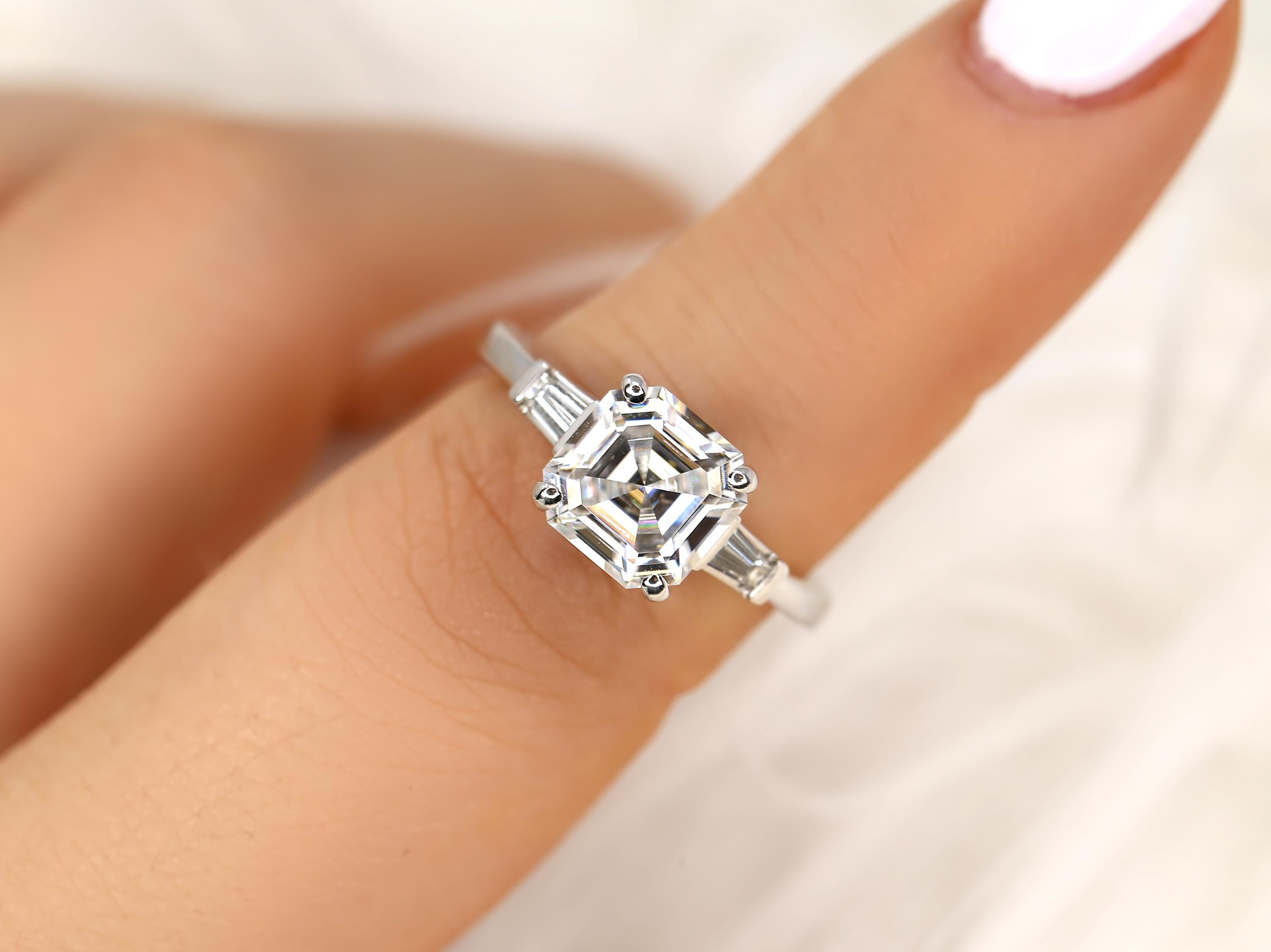 2.20ct Fae 8mm 14kt Colorless Moissanite Art Deco Engagement Ring,Asscher Cut Trilogy Ring,Asscher Three Stone Ring,Anniversary Ring
