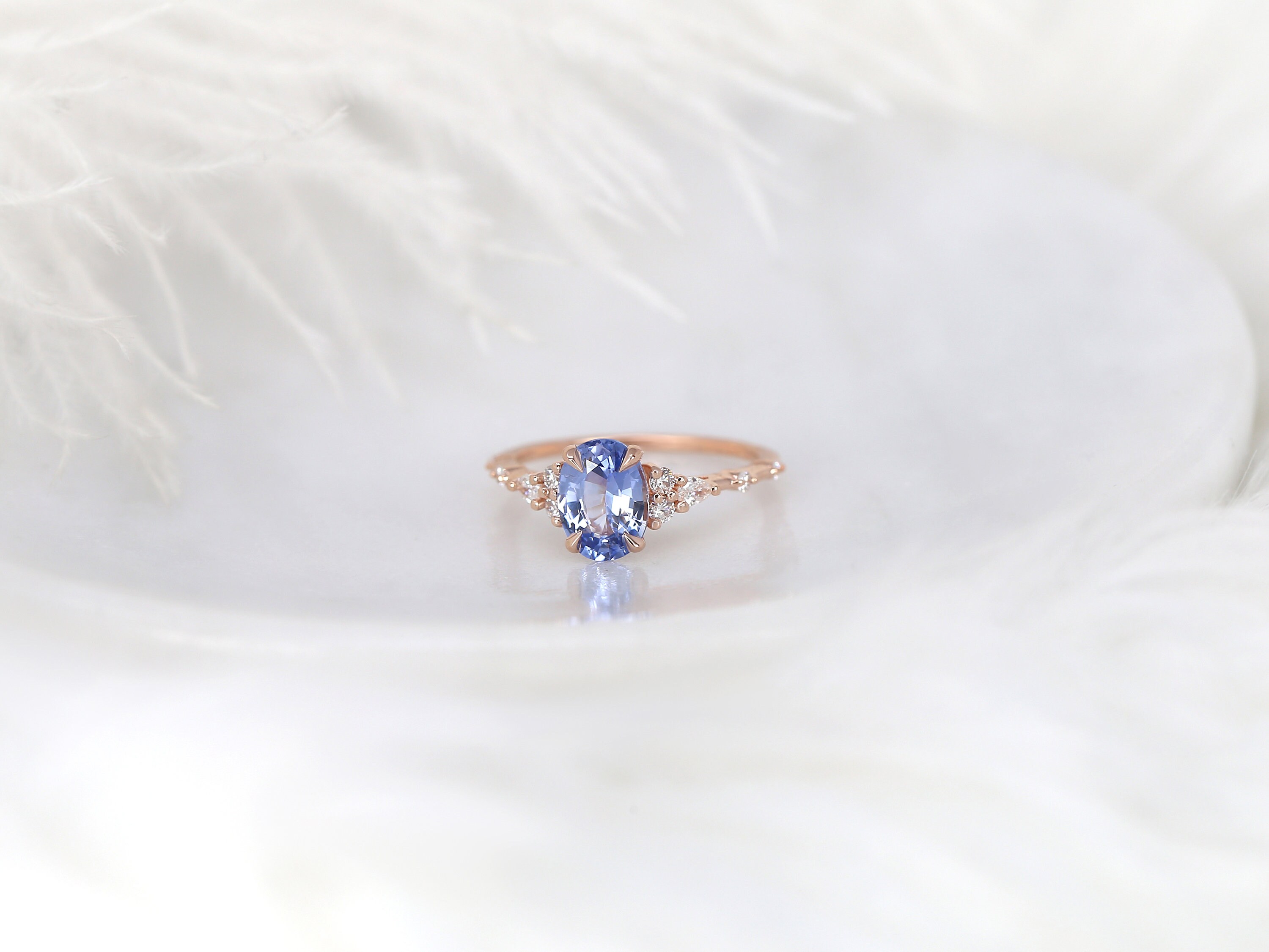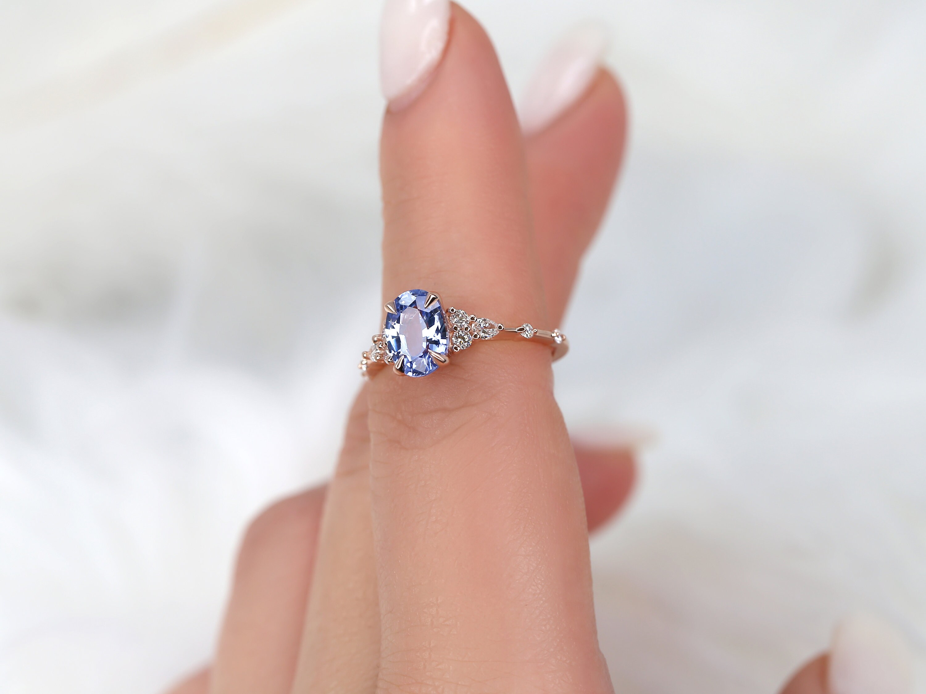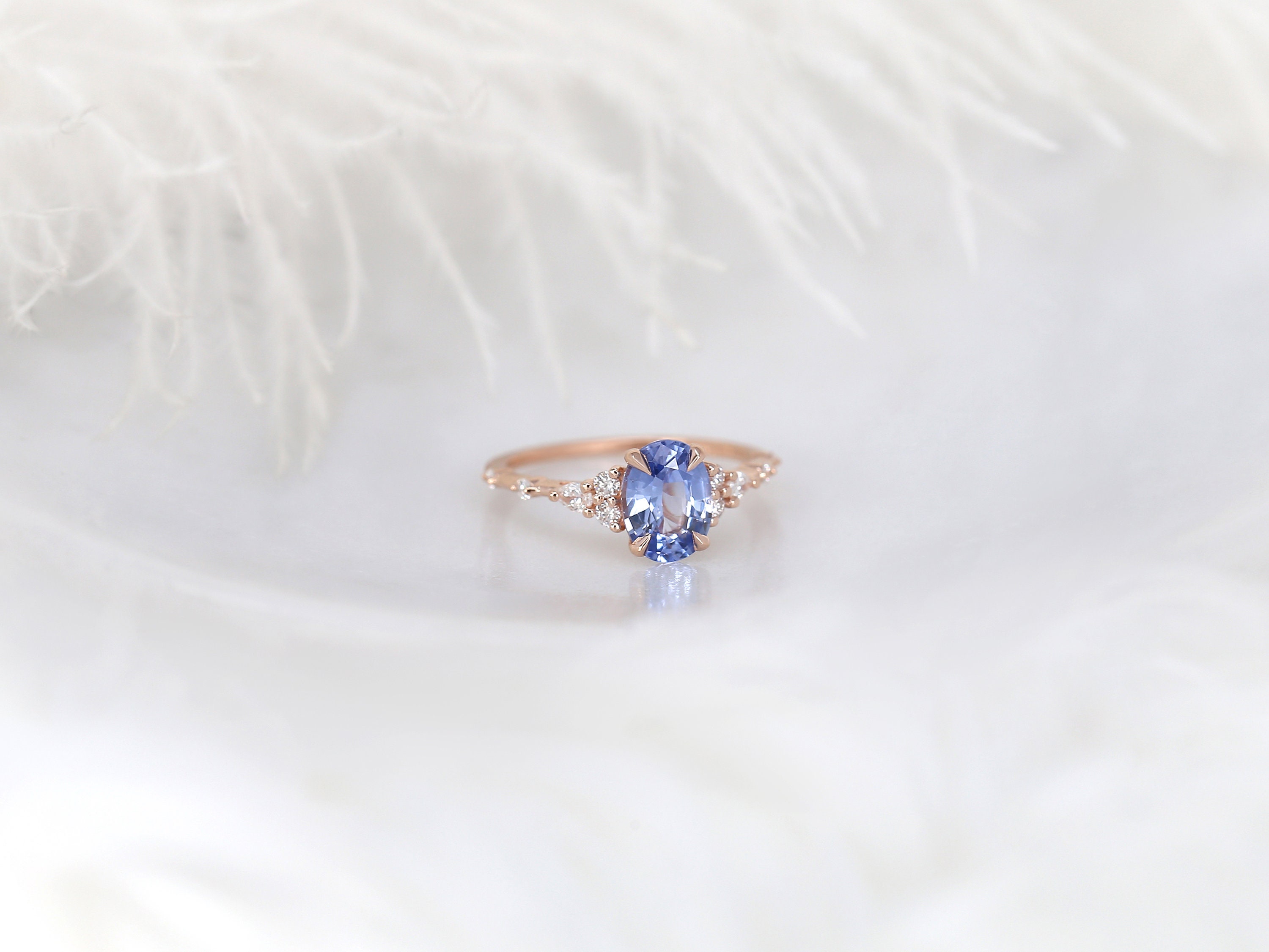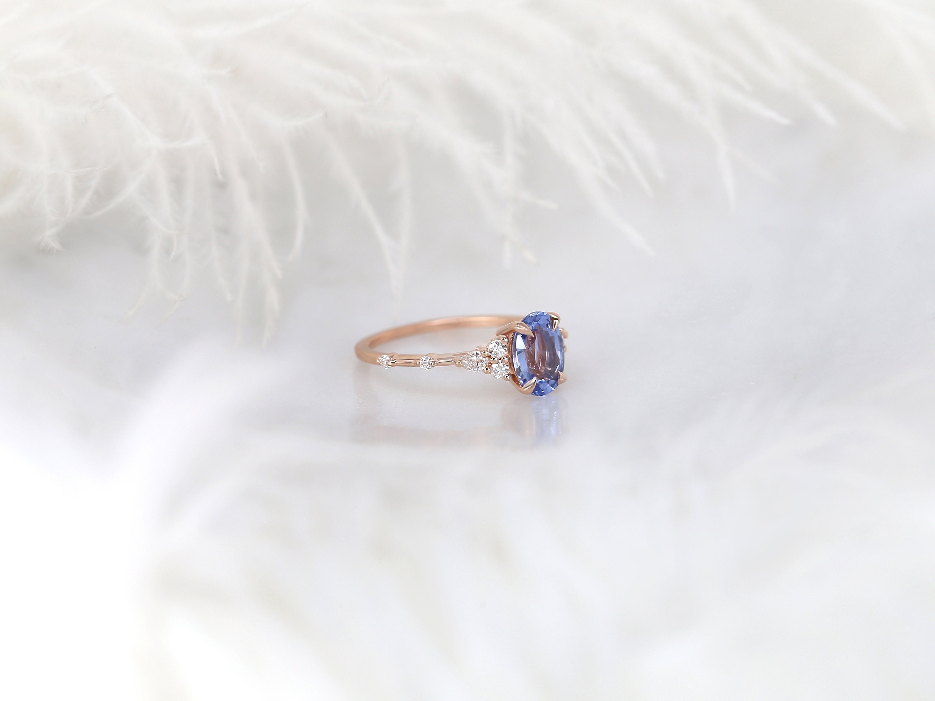 1.74ct Ready to Ship Aspen 14kt Rose Gold Lavender Cornflower Sapphire Diamond Oval Cluster Ring,Dainty Art Deco Oval Ring,Unique Ring