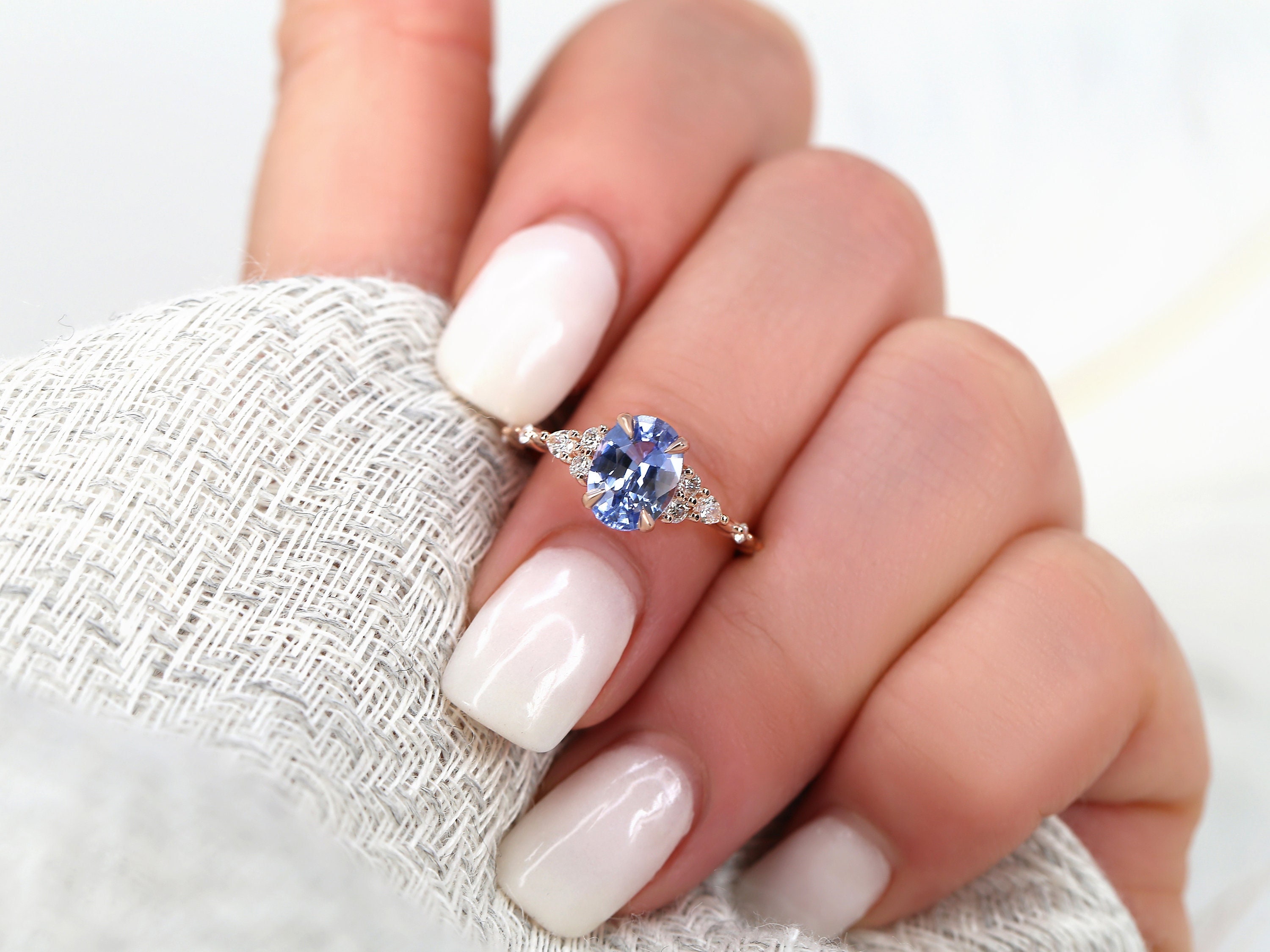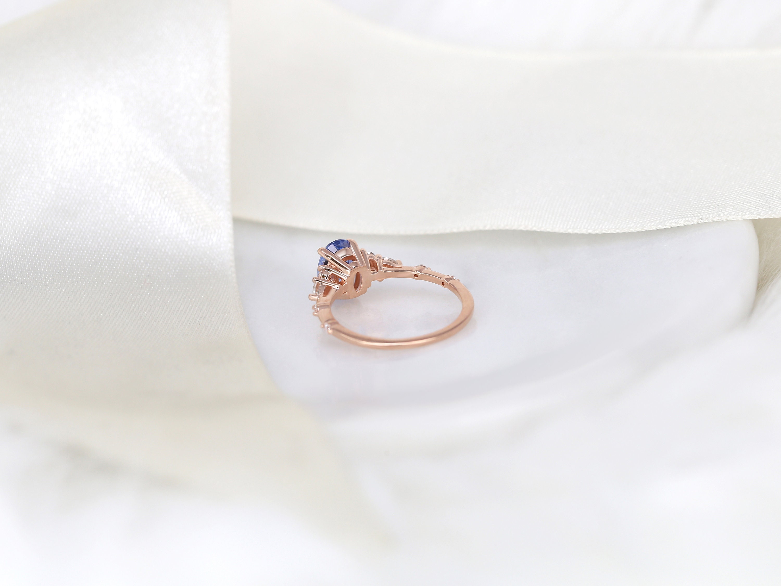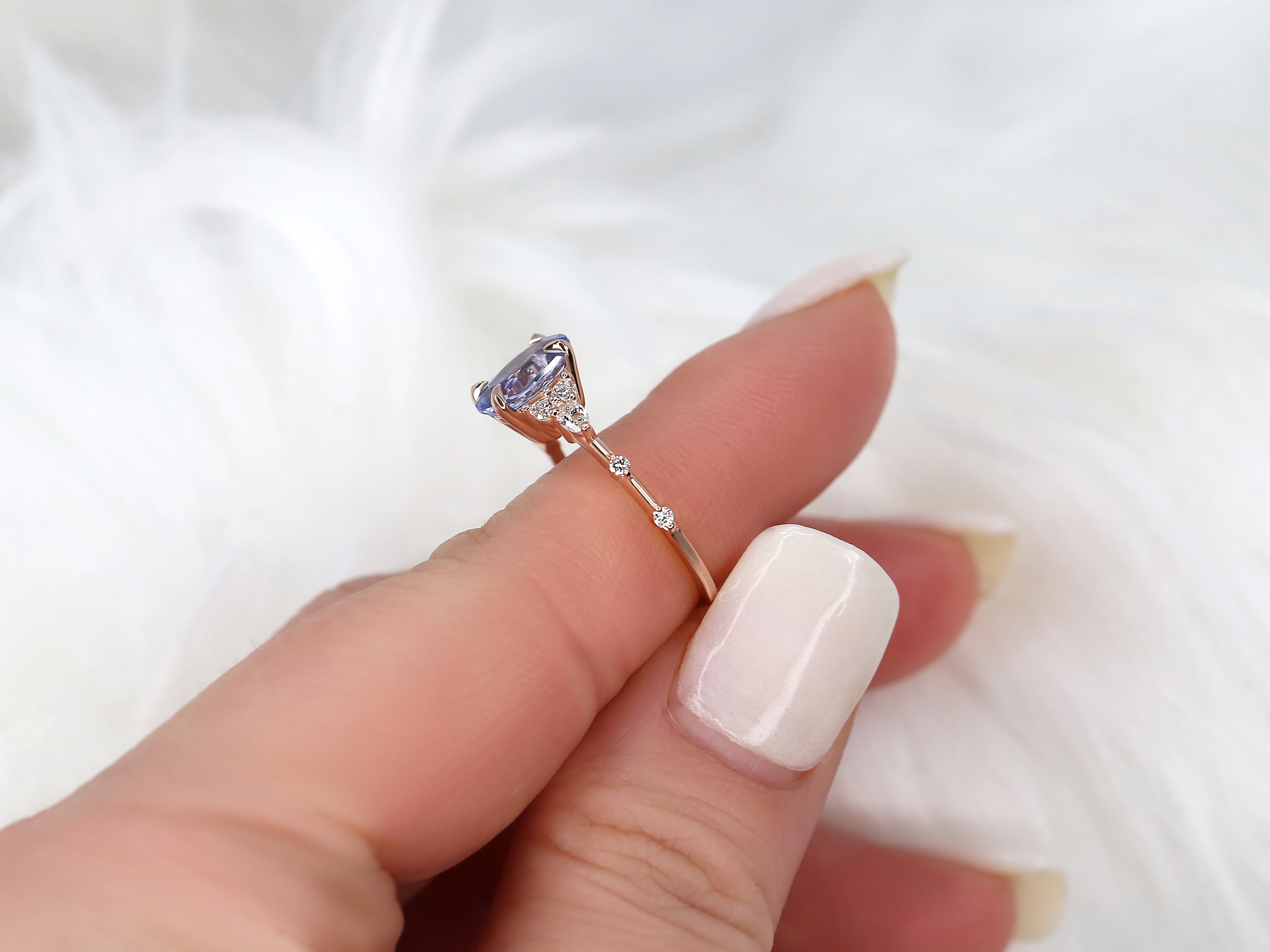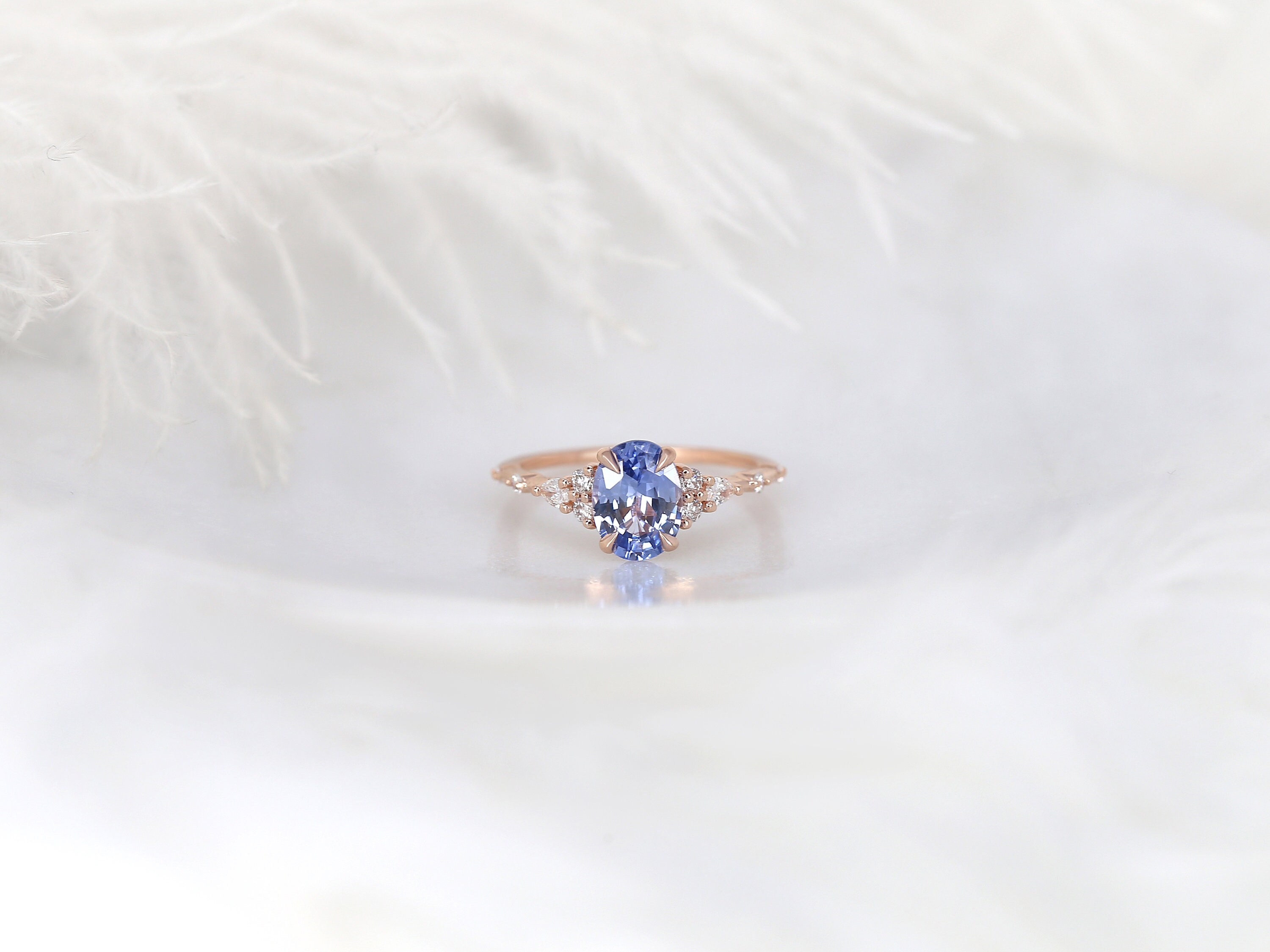 1.74ct Ready to Ship Aspen 14kt Rose Gold Lavender Cornflower Sapphire Diamond Oval Cluster Ring,Dainty Art Deco Oval Ring,Unique Ring