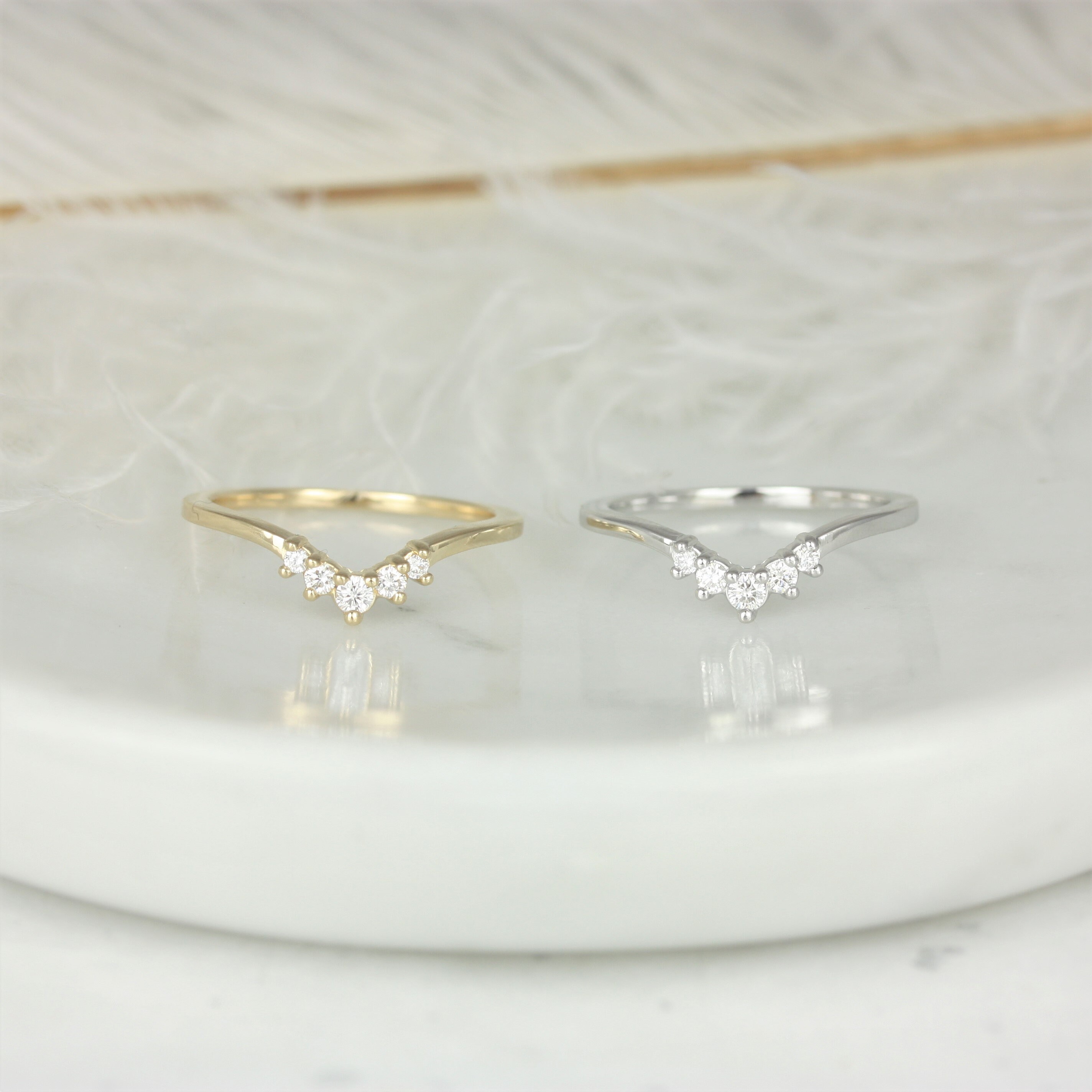 Ready to ship Addie 14kt Yellow Gold Diamonds Dainty Chevron Tiara Crown Curved Unique Nesting Ring,Stacking Ring,Rosados Box