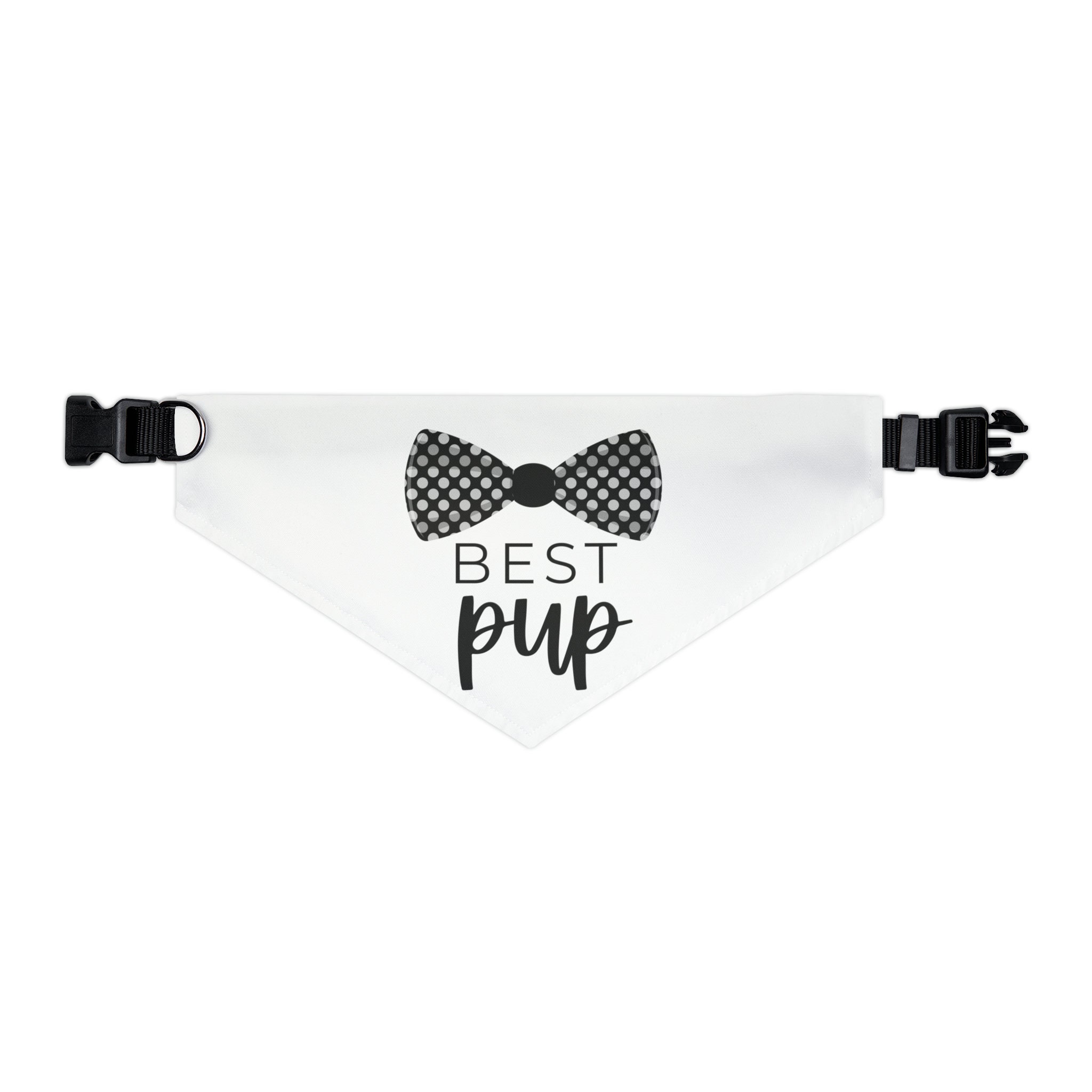 Want your furry as the Best Pup? Look no further! This adorable collar bandana a thoughtful addition to your special moment. The bandana collar is available in three sizes to fit any pet. The construction and printing is durable enough for machine washing. The collar fastening helps to keep the bandana fitting correctly.