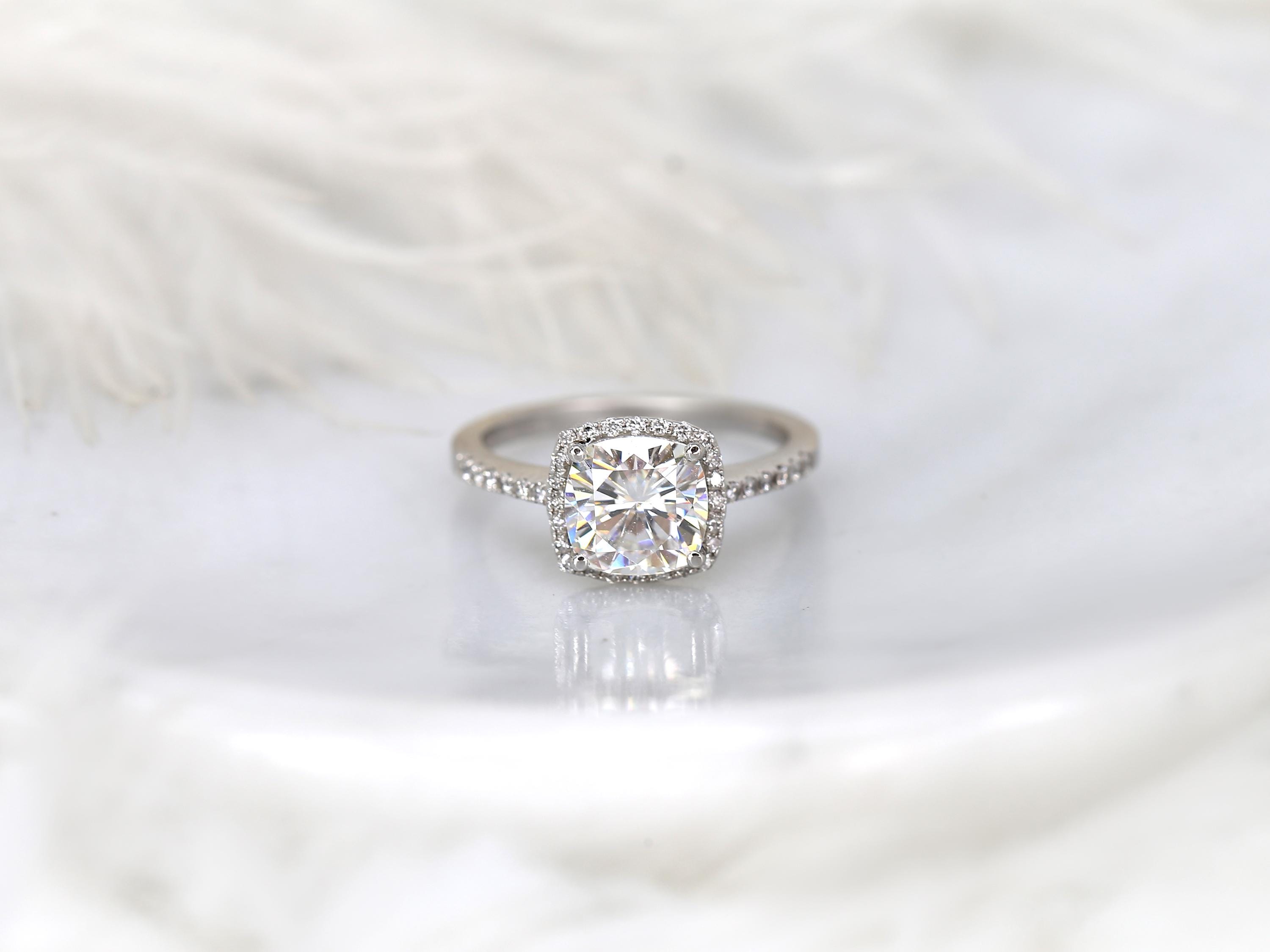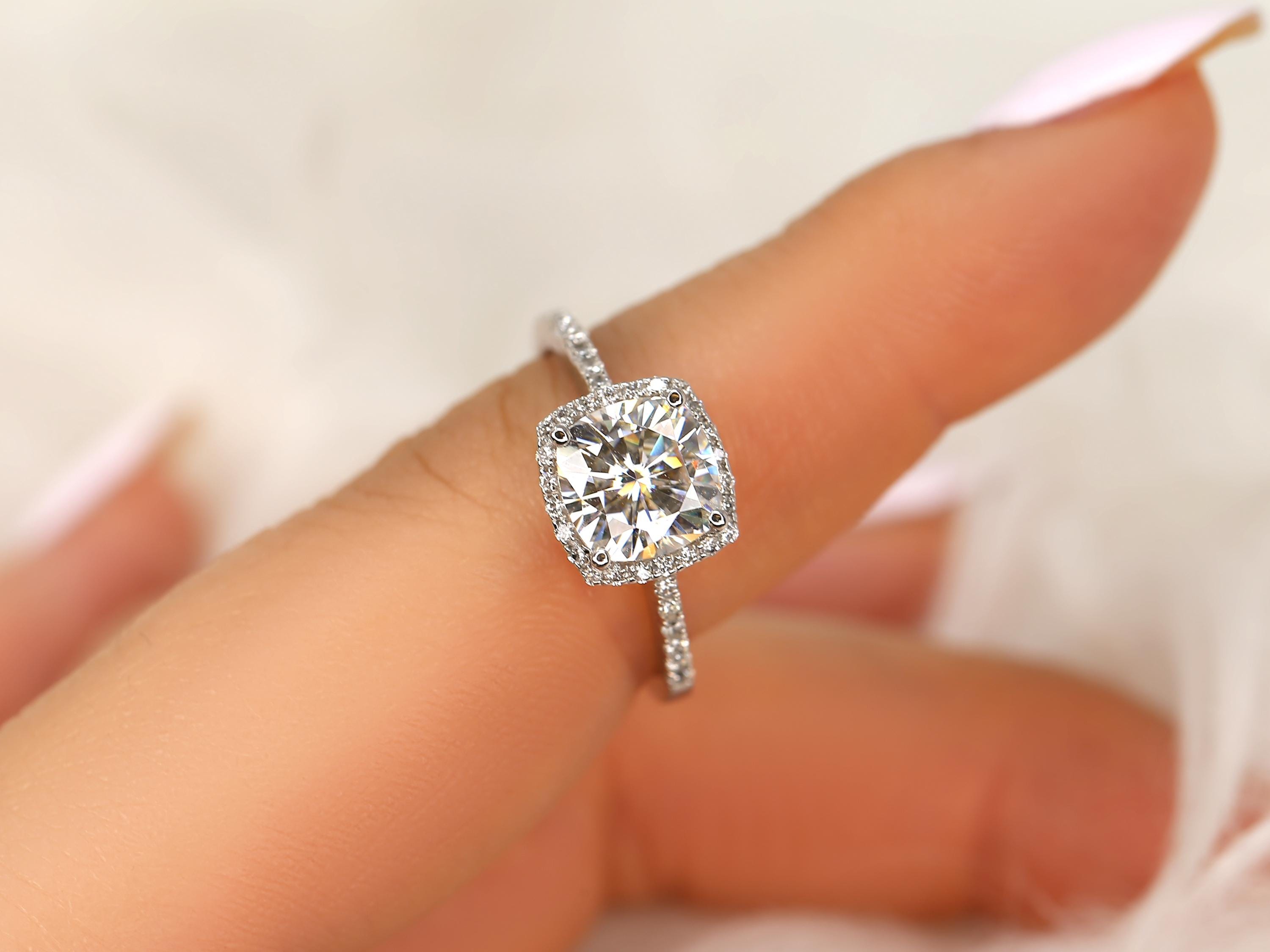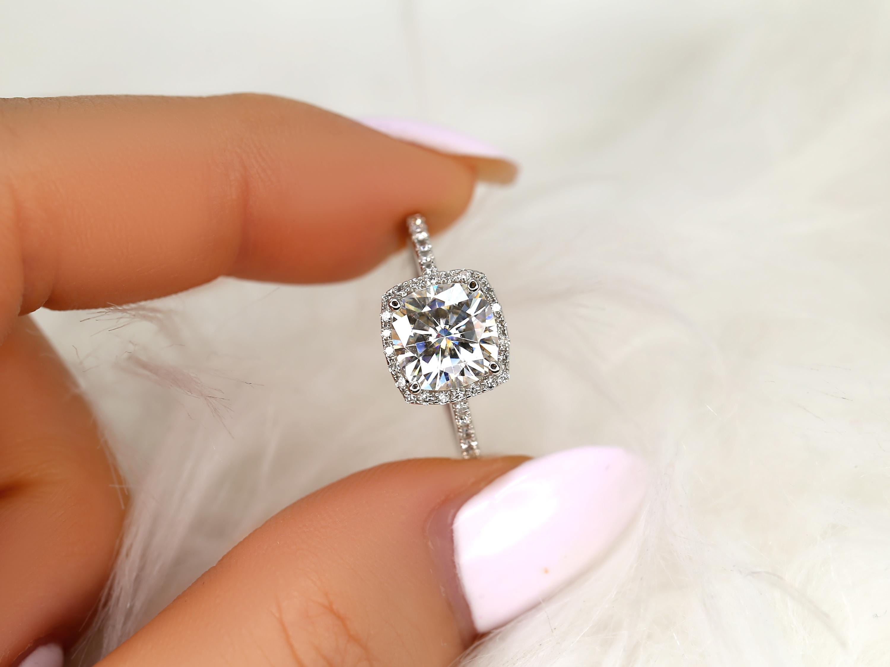 2ct Randi 7.5mm 14kt Moissanite Halo Engagement Ring,Cushion Cut Ring,Cushion Halo Ring,Anniversary Ring,Cushion Wedding Ring