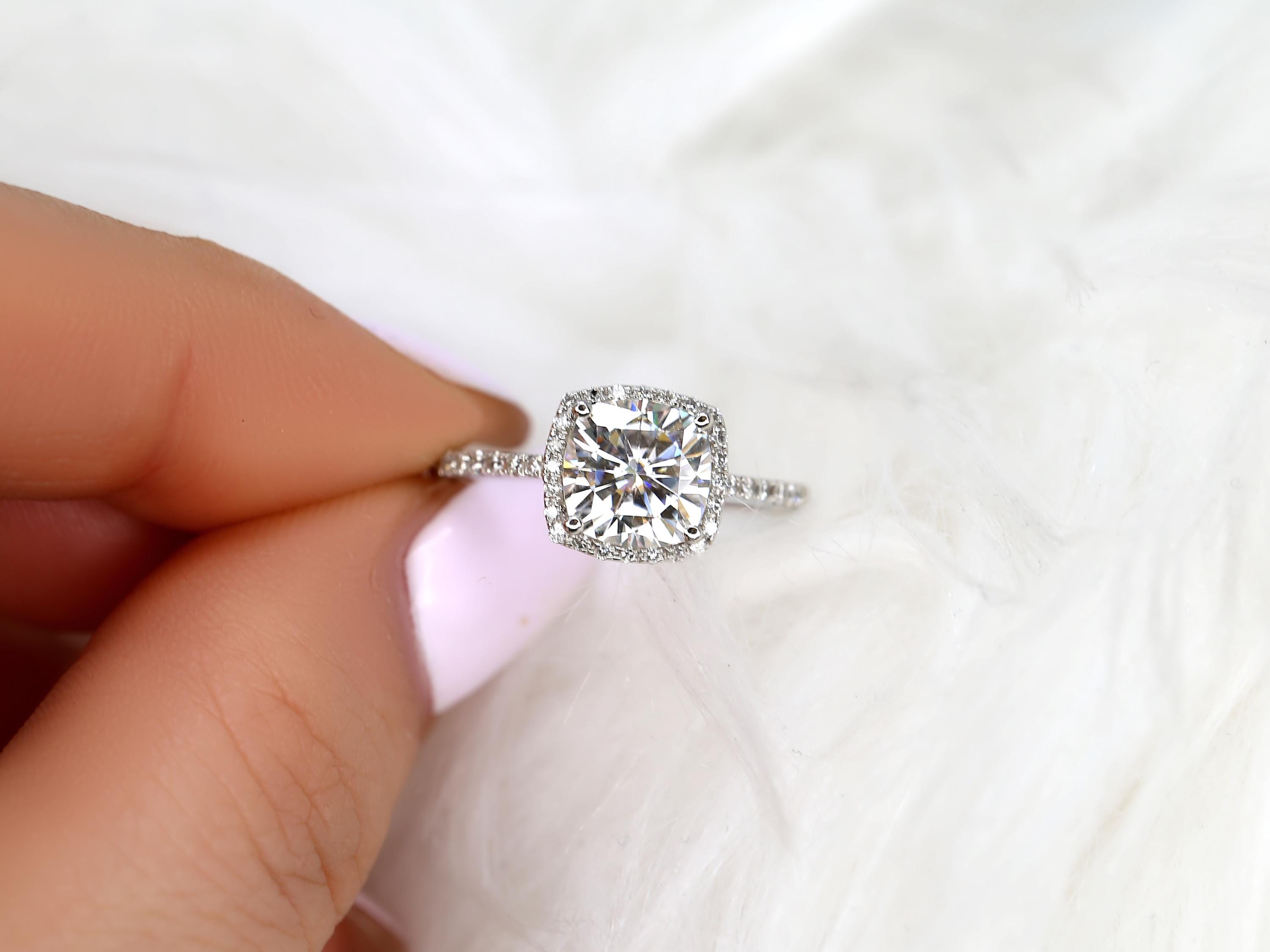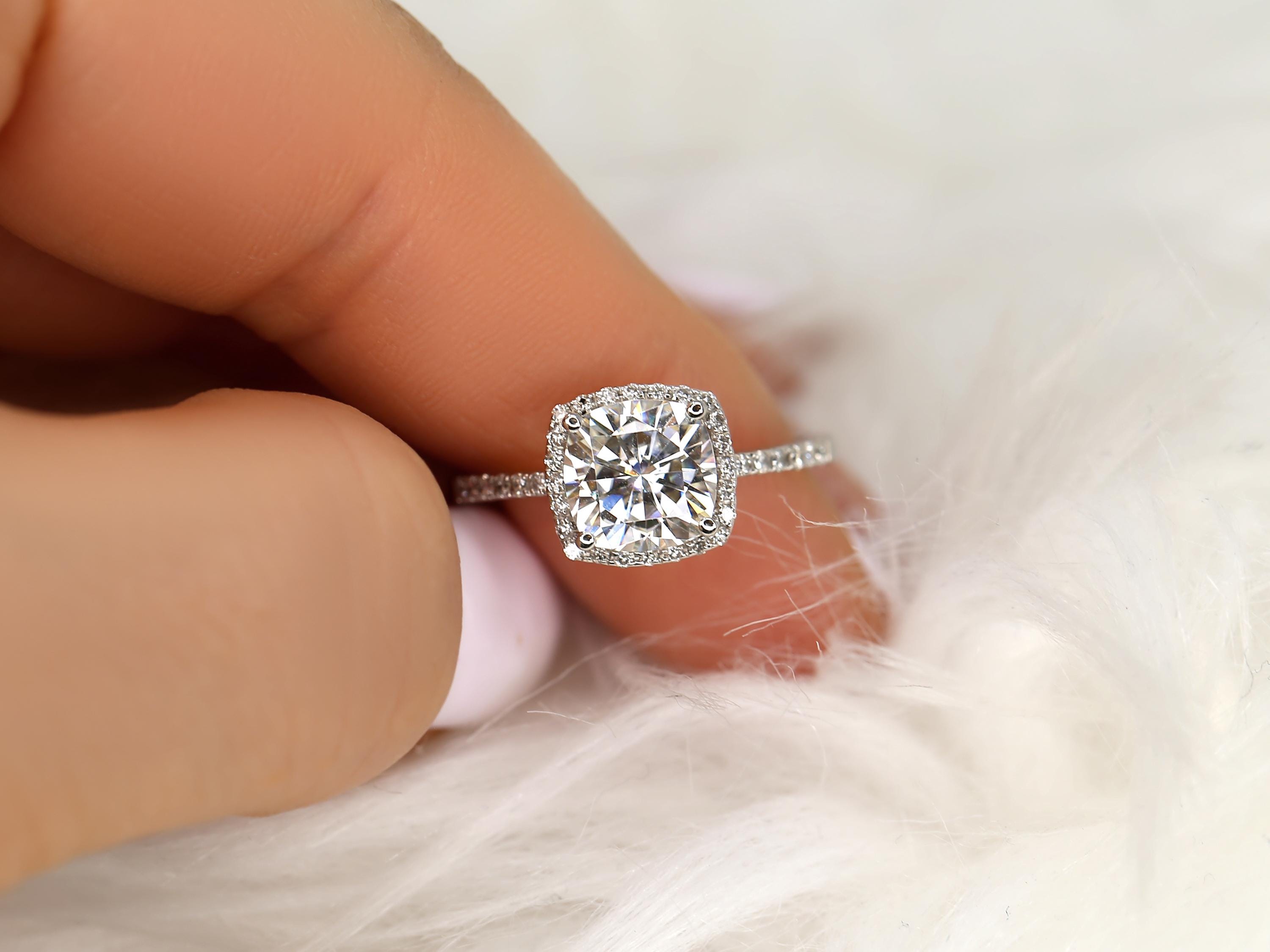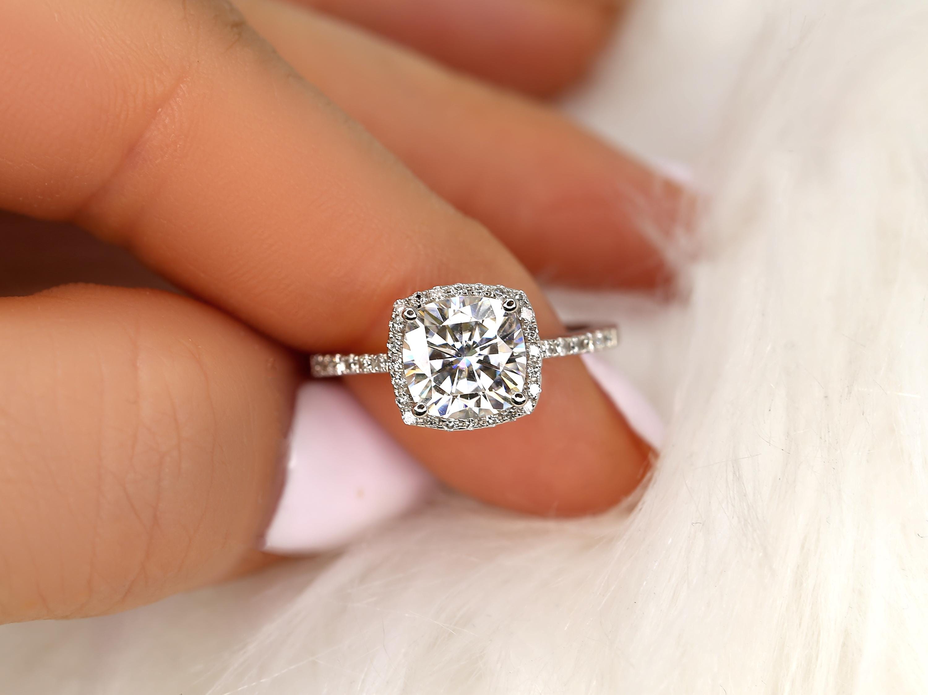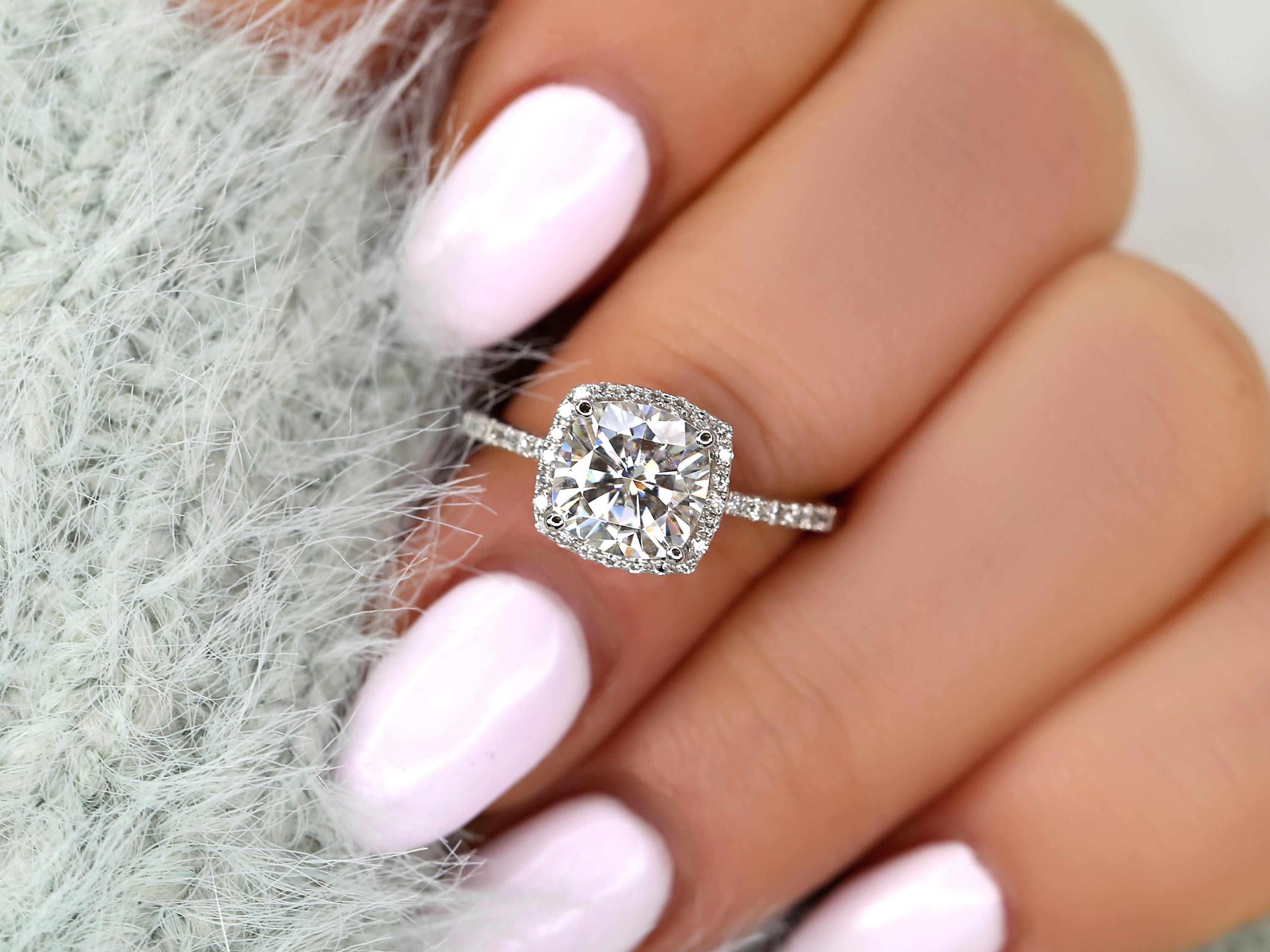 2ct Randi 7.5mm 14kt Moissanite Halo Engagement Ring,Cushion Cut Ring,Cushion Halo Ring,Anniversary Ring,Cushion Wedding Ring