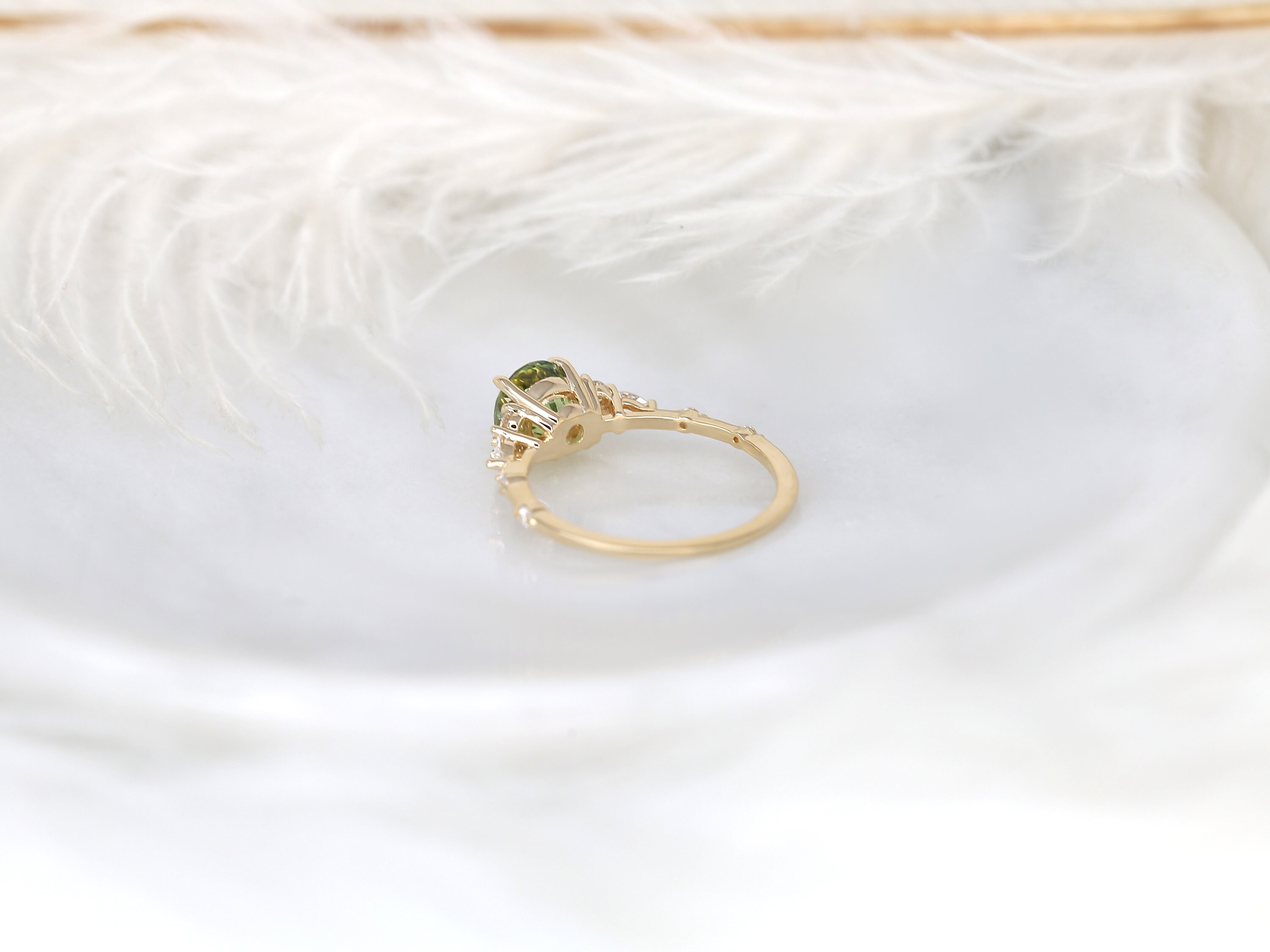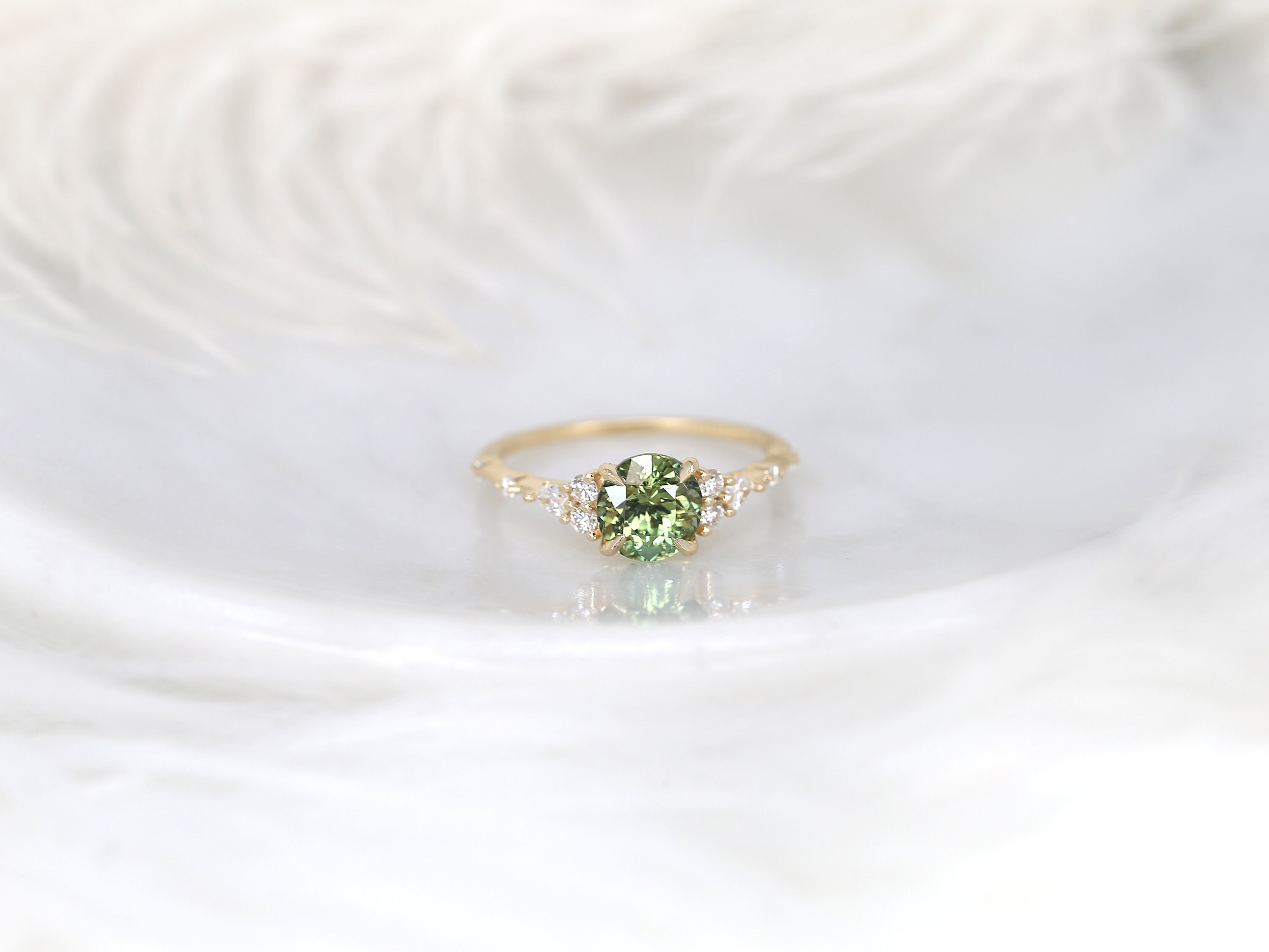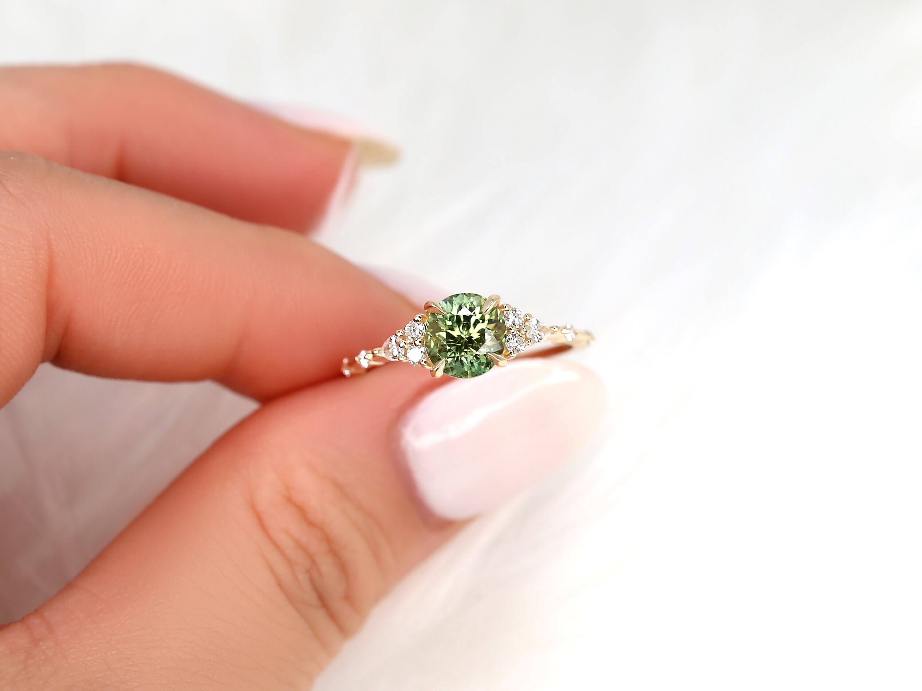1.79ct Ready to Ship Anastasia 14kt Gold Green Tea Teal Sapphire Diamond Round Cluster Ring, Art Deco Round Ring,Dainty Unique Ring