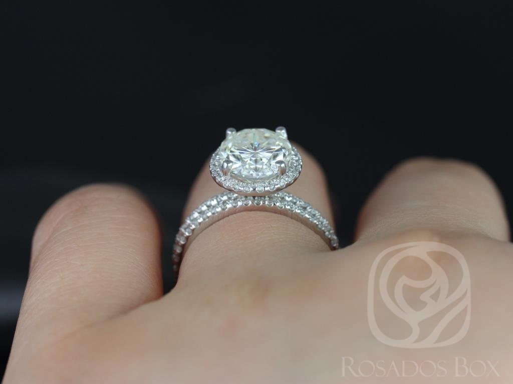 3ct Oval Forever One Moissanite Diamond Dainty Micro Pave Halo Classic Wedding Set Rings,14kt White Gold,Federella 10x8mm,Rosados Box