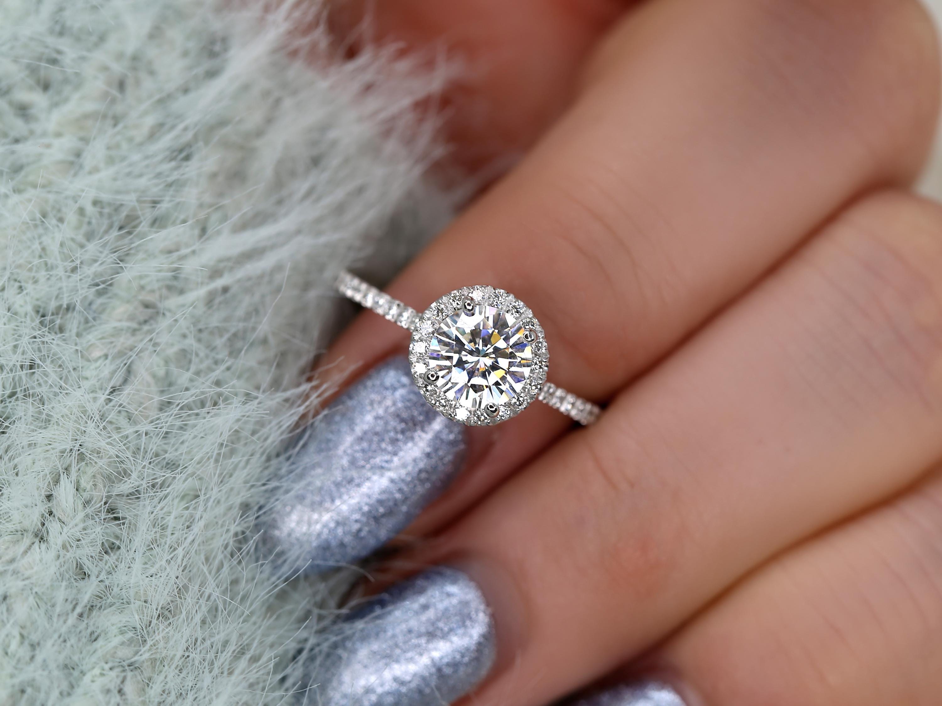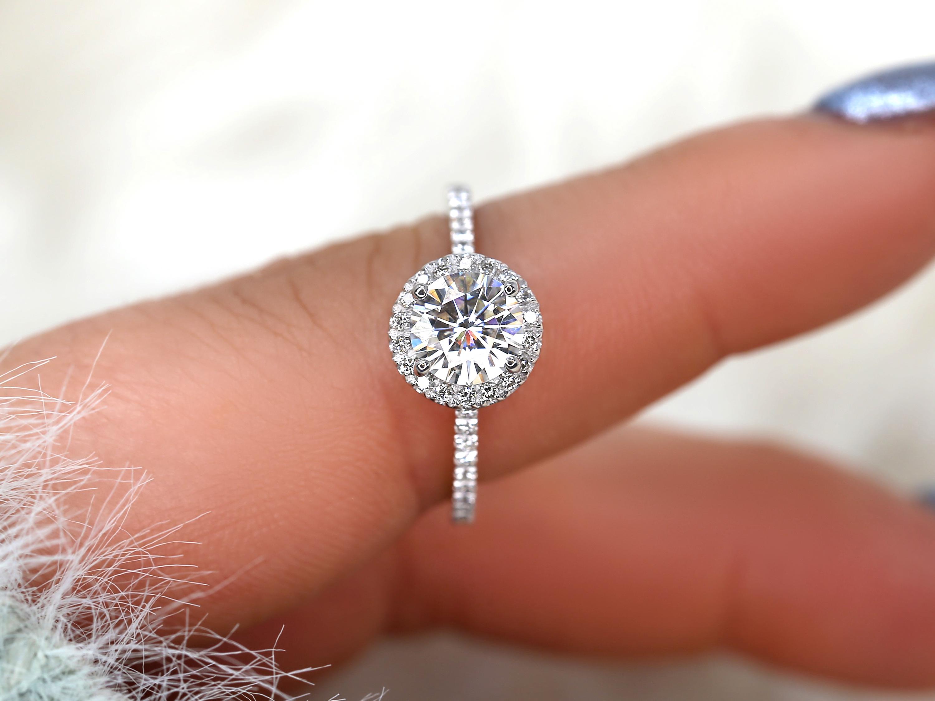 1ct Kimberly 6.5mm 14kt Moissanite Diamond Halo Engagement Ring,Round Halo Ring,Halo Wedding Ring,Anniversary Ring,Minimalist Round Cut Ring