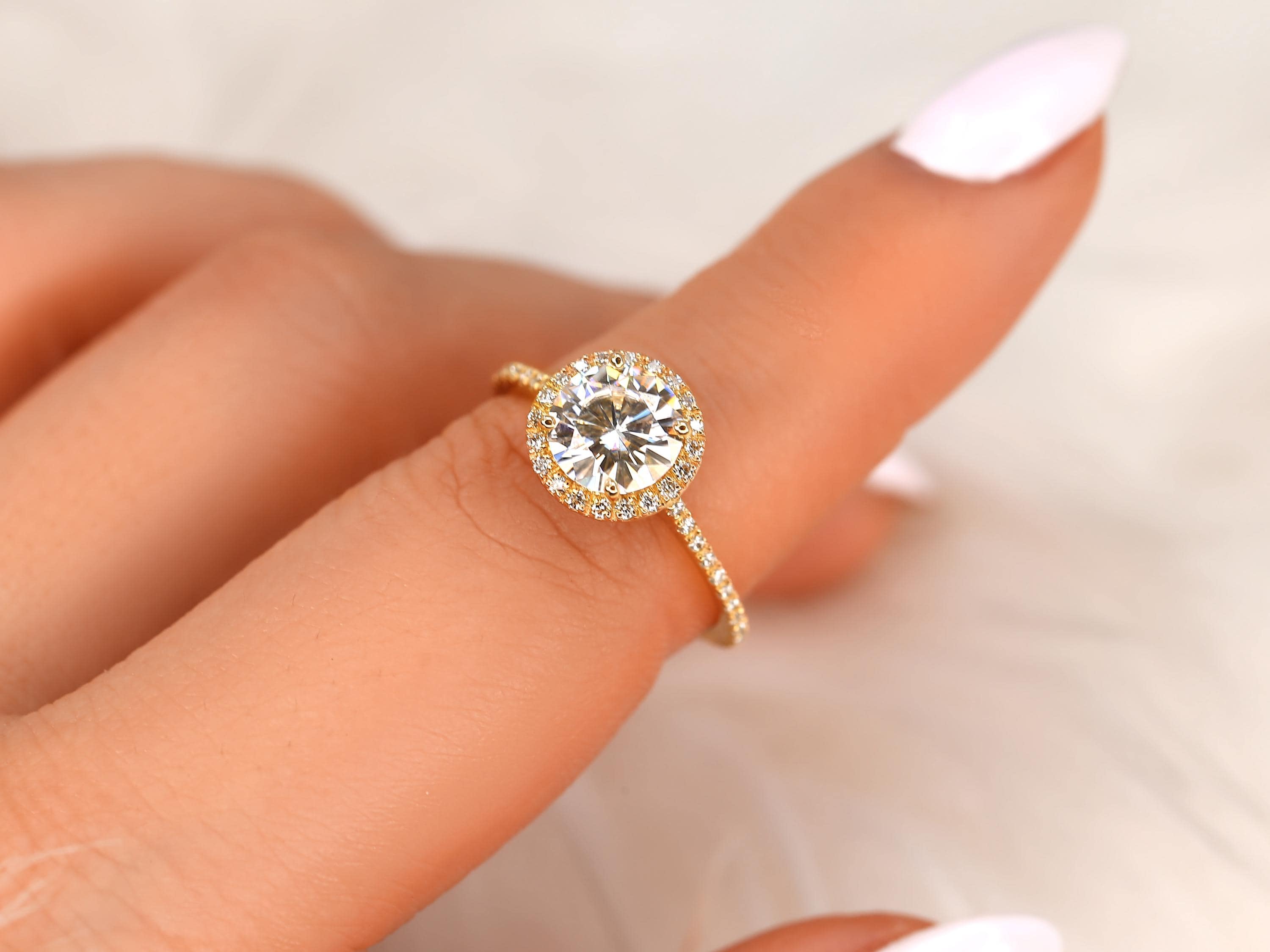 1.50ct Ready to Ship Kimberly 7.5mm 14kt ROSE Gold Value Moissanite Diamond Round Halo Engagement Ring,Minimalist Halo Ring,Anniversary Ring