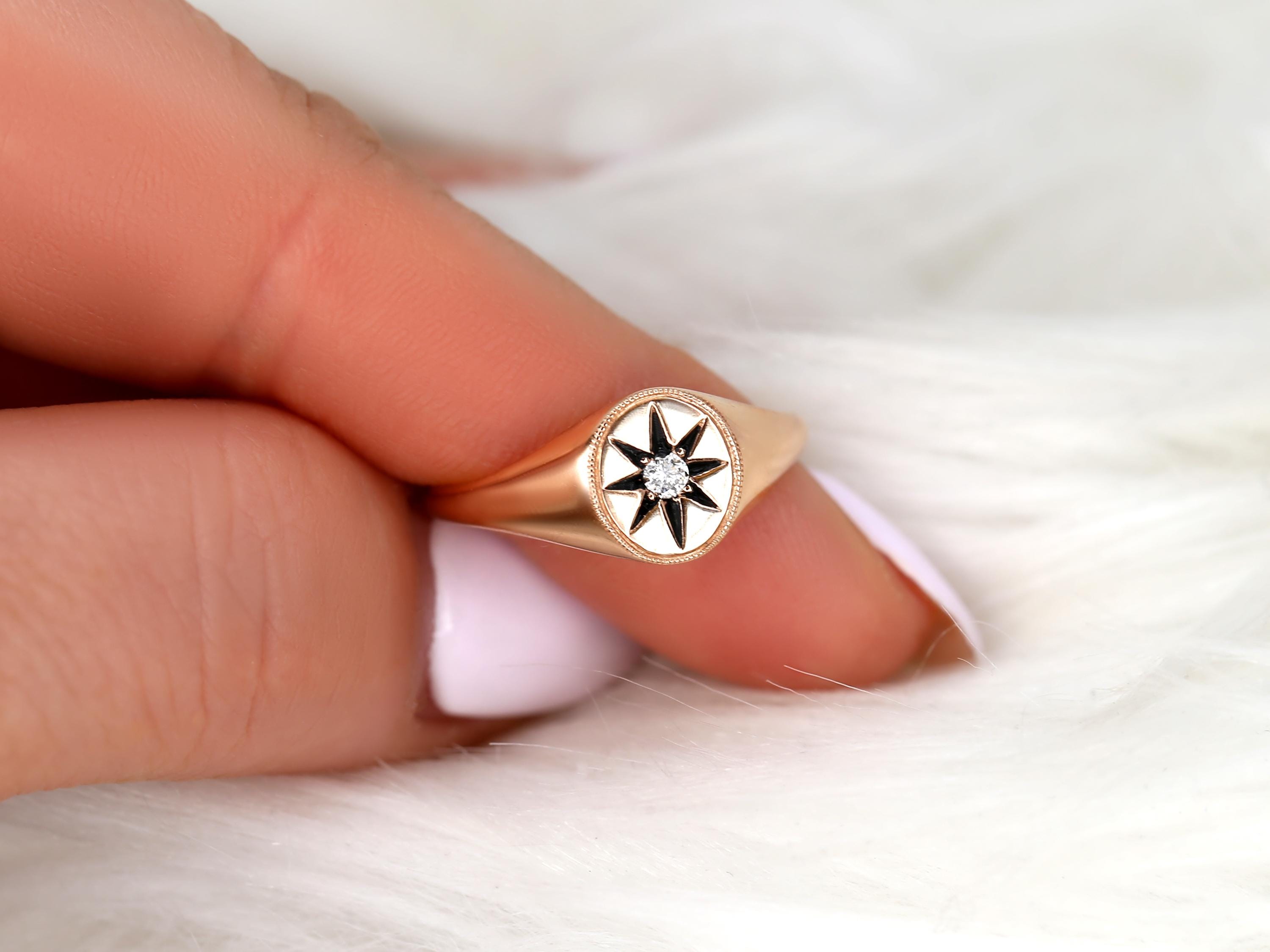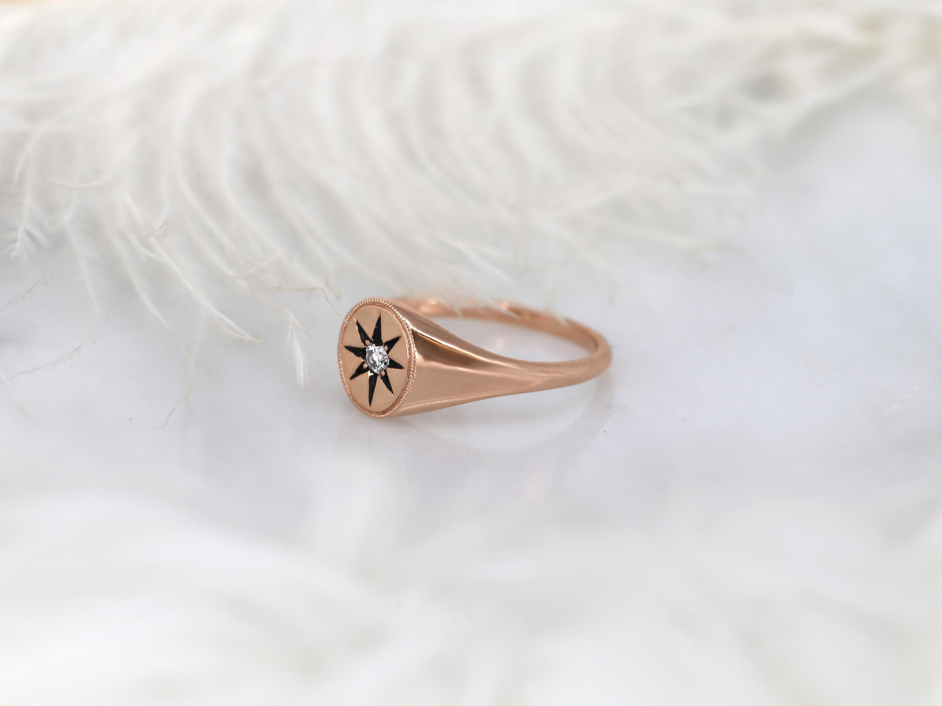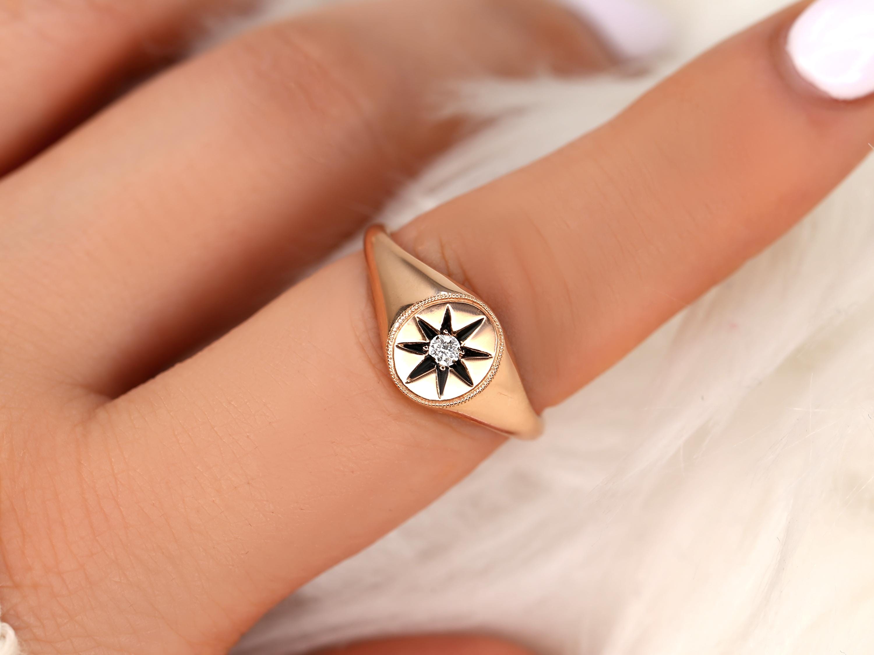 Estrella Noche 14kt Star Diamond Ring,Diamond Signet Ring,Star Ring, Oval Signet Ring, Celestial Ring,Me Ring,Gift For Her,April Birthstone