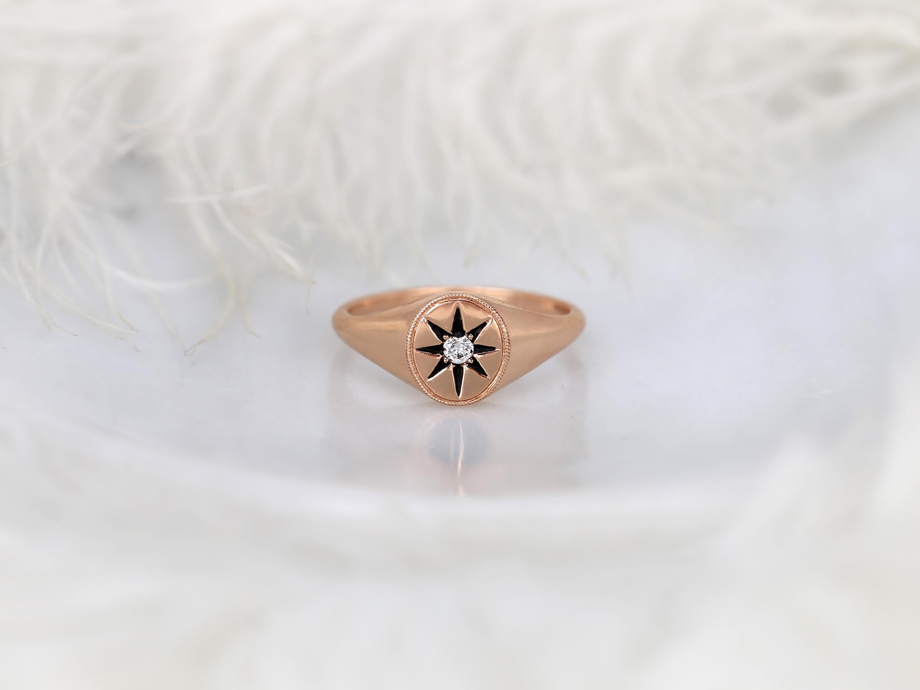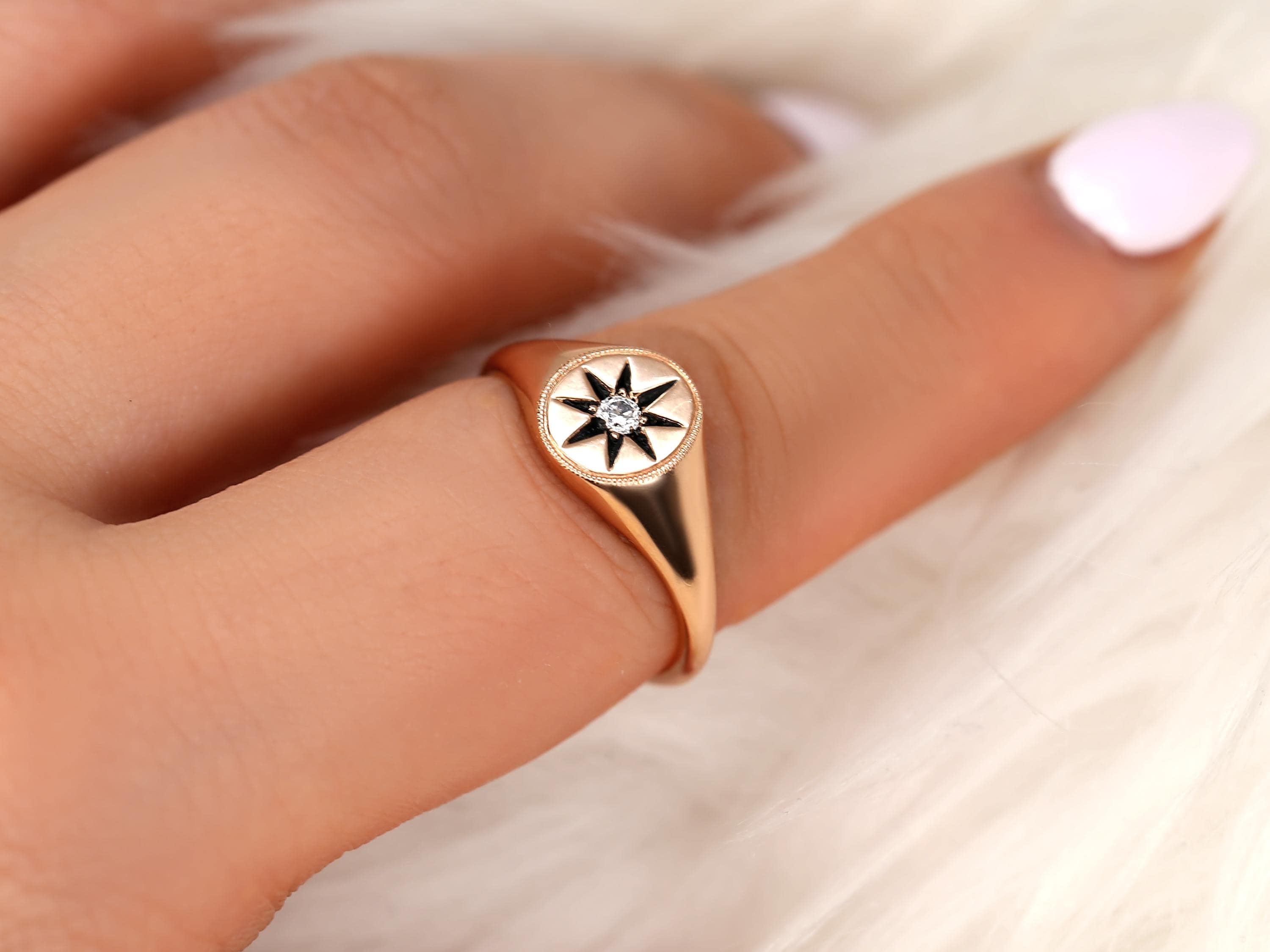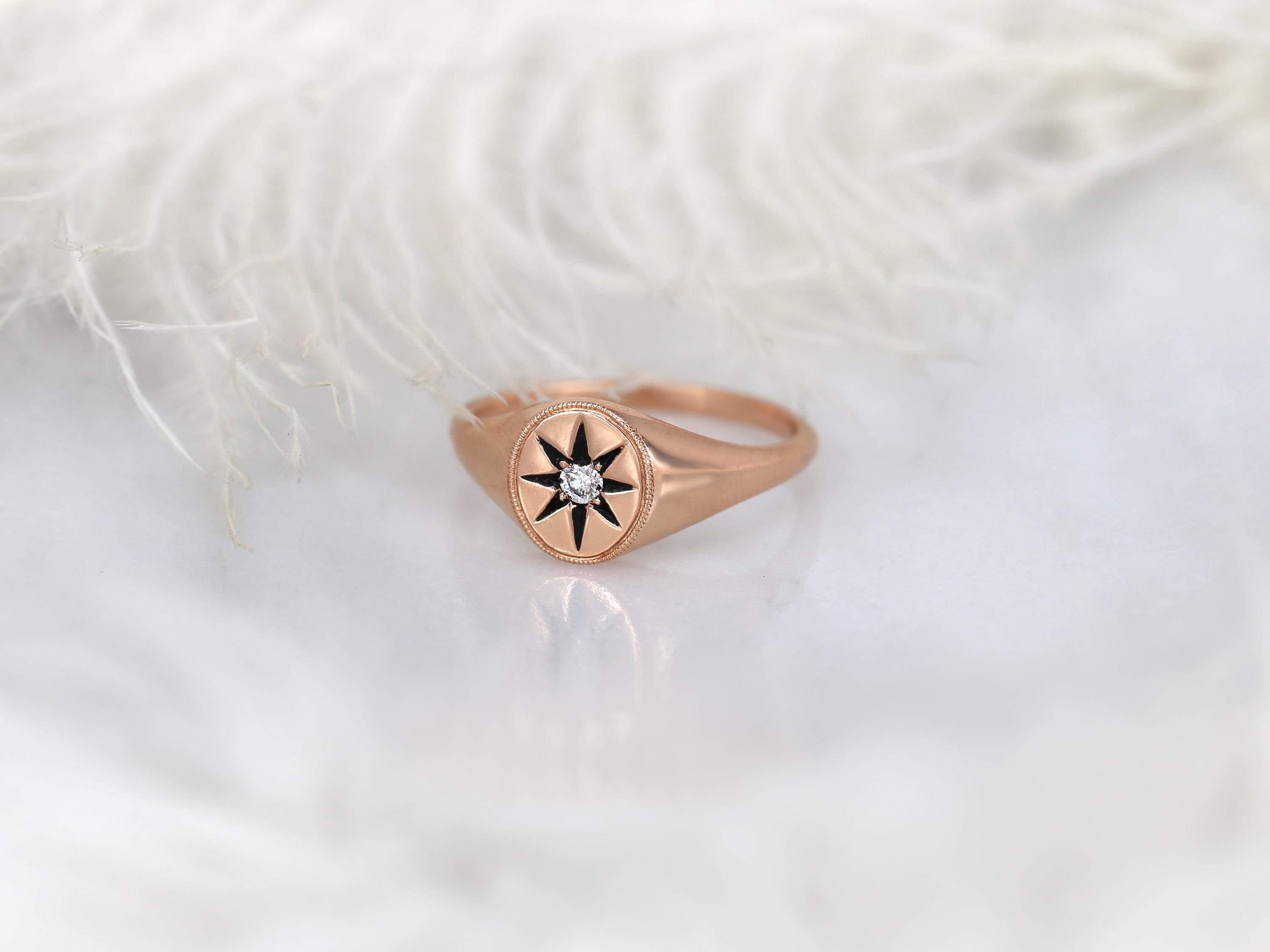 Estrella Noche 14kt Star Diamond Ring,Diamond Signet Ring,Star Ring, Oval Signet Ring, Celestial Ring,Me Ring,Gift For Her,April Birthstone