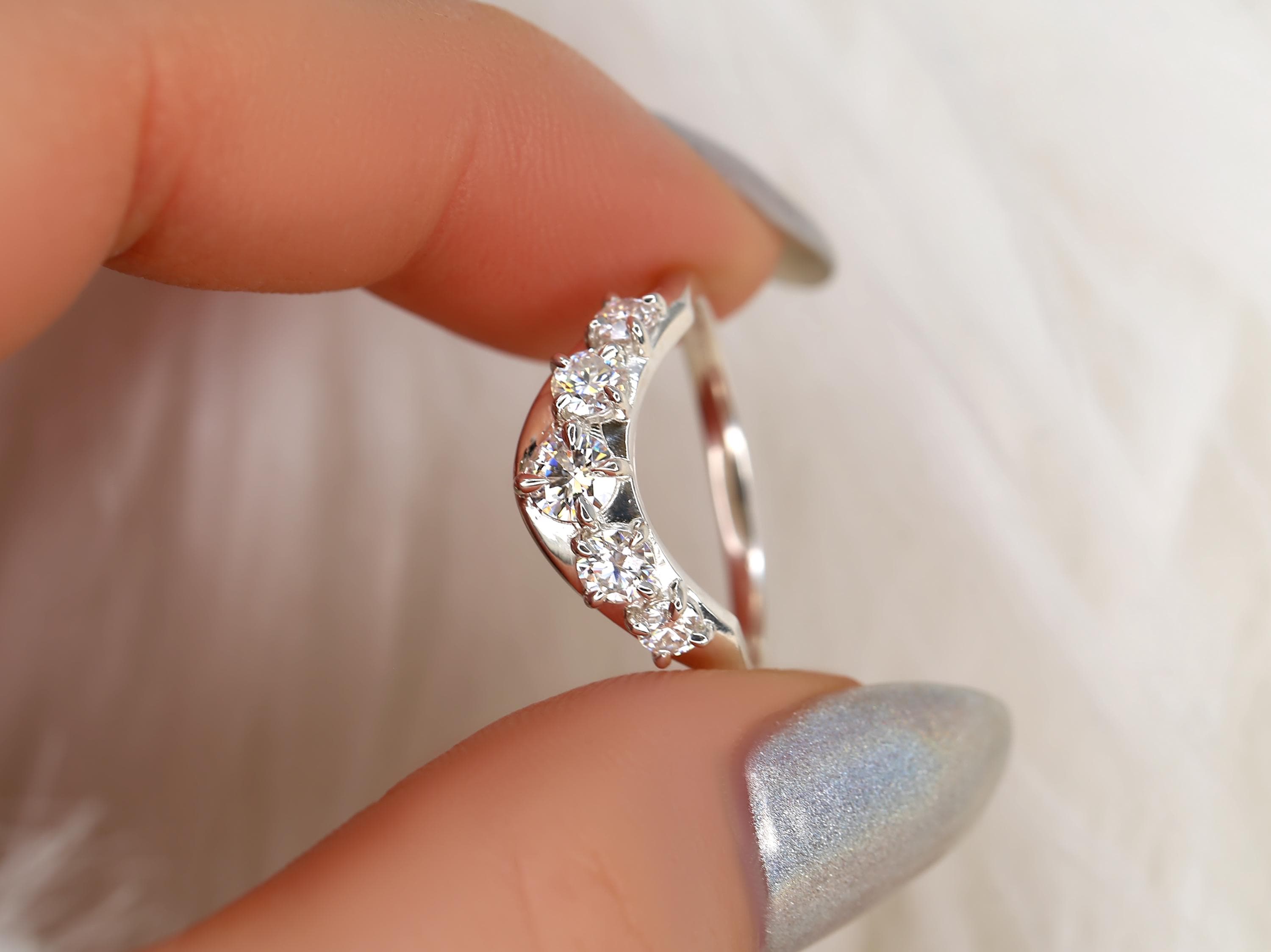Mega Saldana 14kt Diamond Graduated Nesting Ring,Unique Curved Wedding Ring,Nesting Band,Unique Wedding Ring,Crescendo Band,Thick Gold Ring