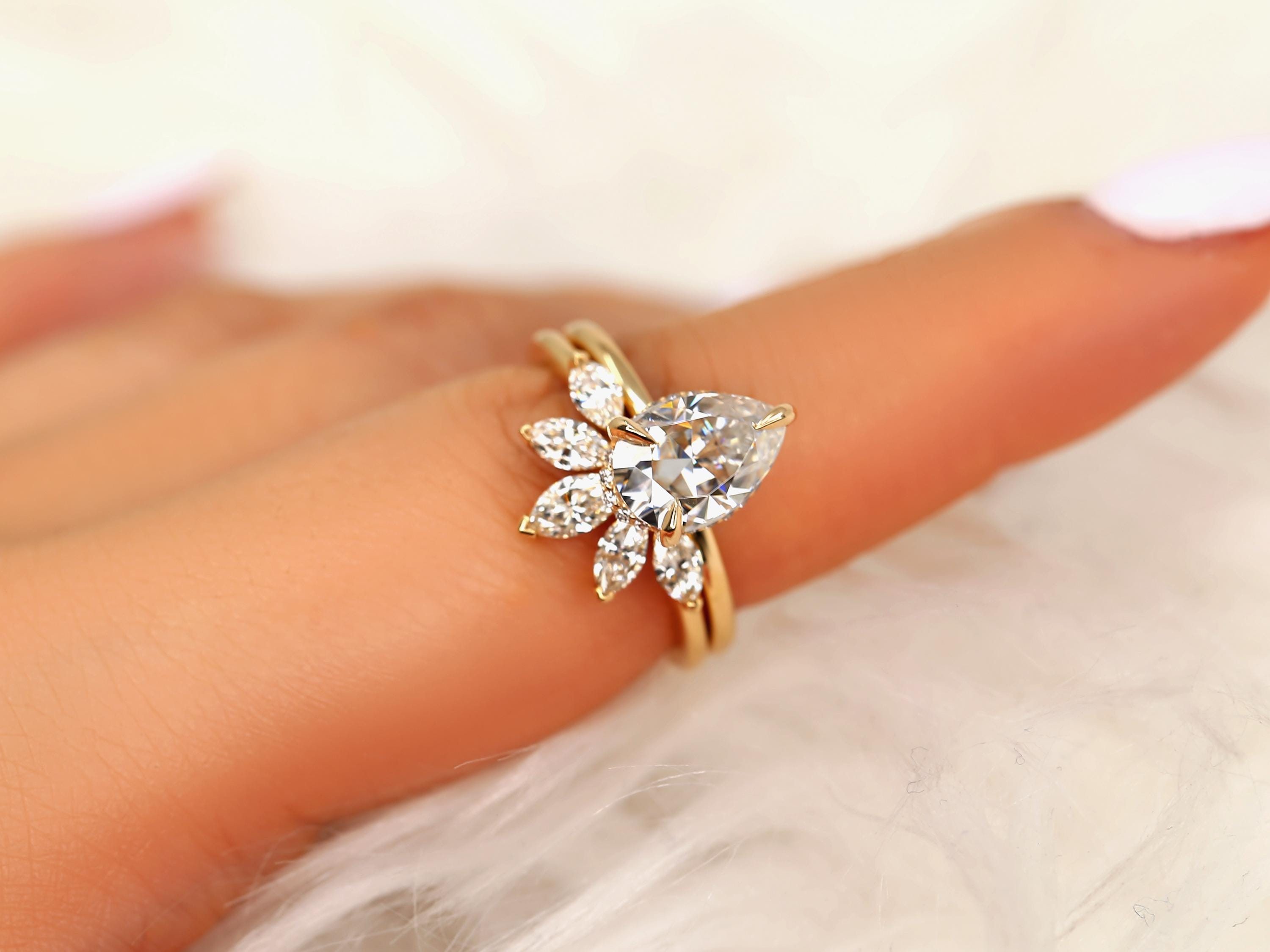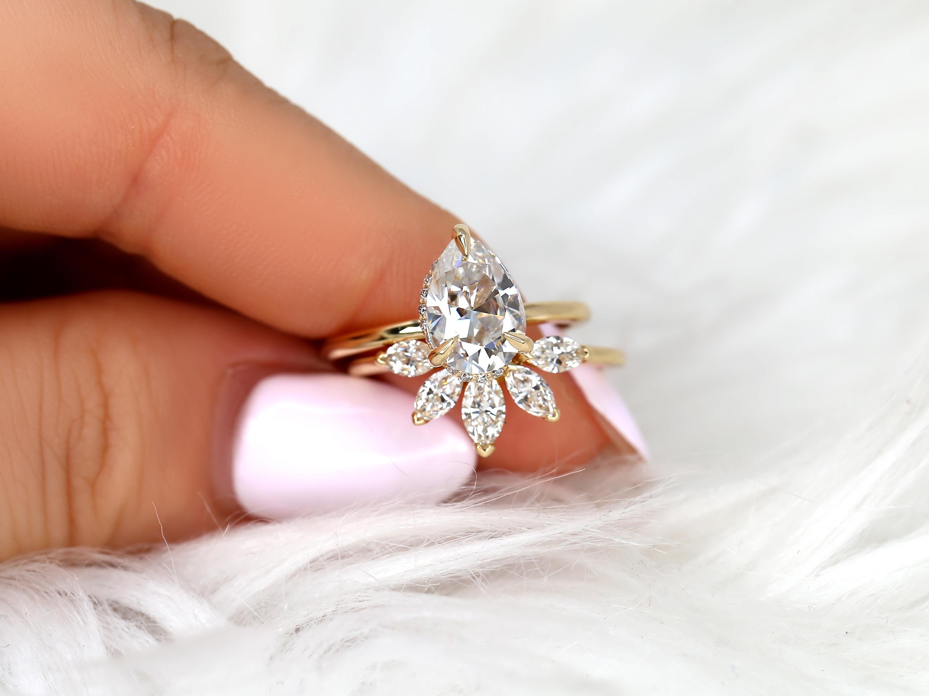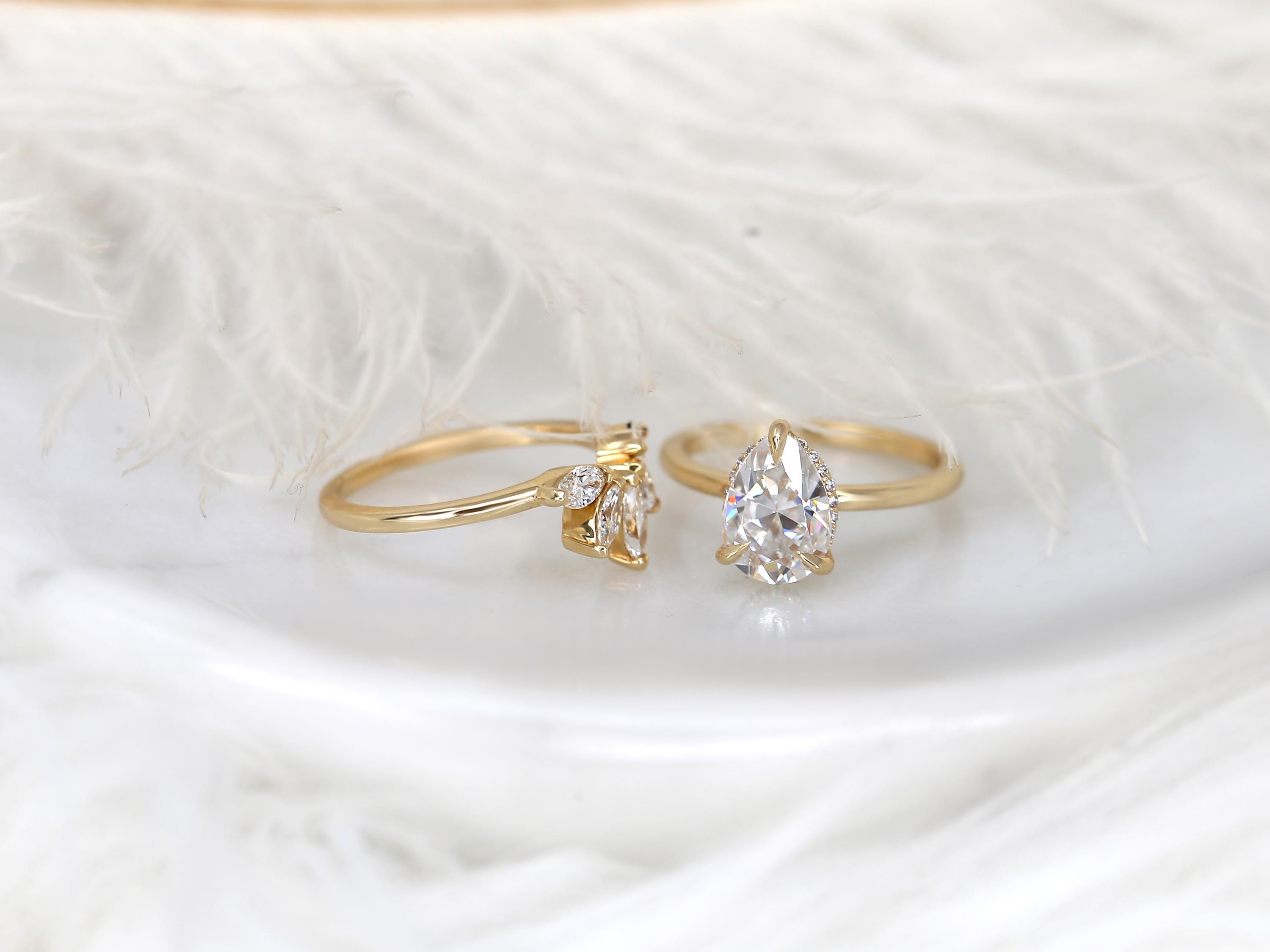 2ct Winnie 10x7mm & Cardi 14kt Moissanite Pear Hidden Halo Bridal Set,Pear Wedding Ring Set,Pear Engagement Ring,Hidden Halo Ring Set
