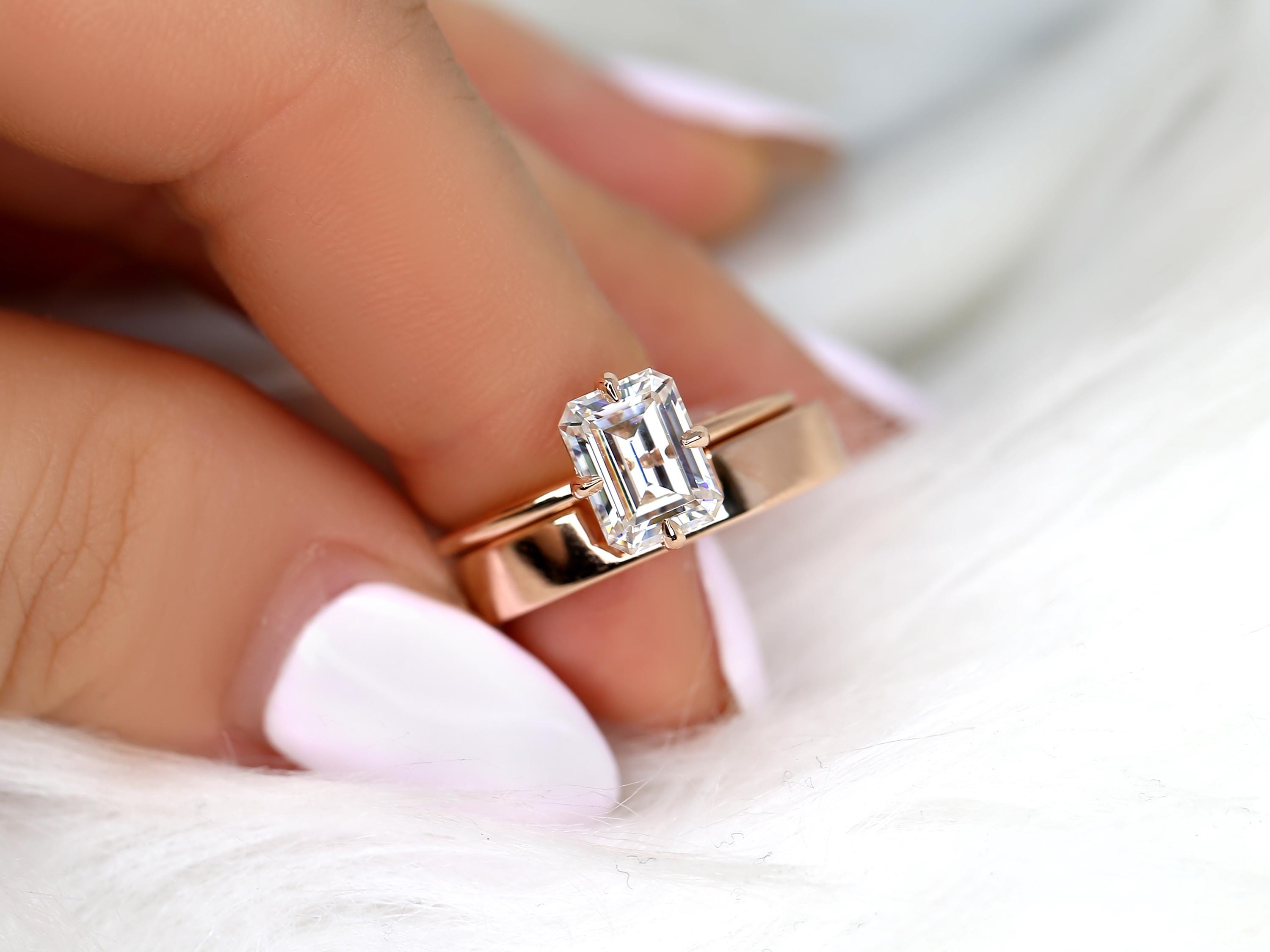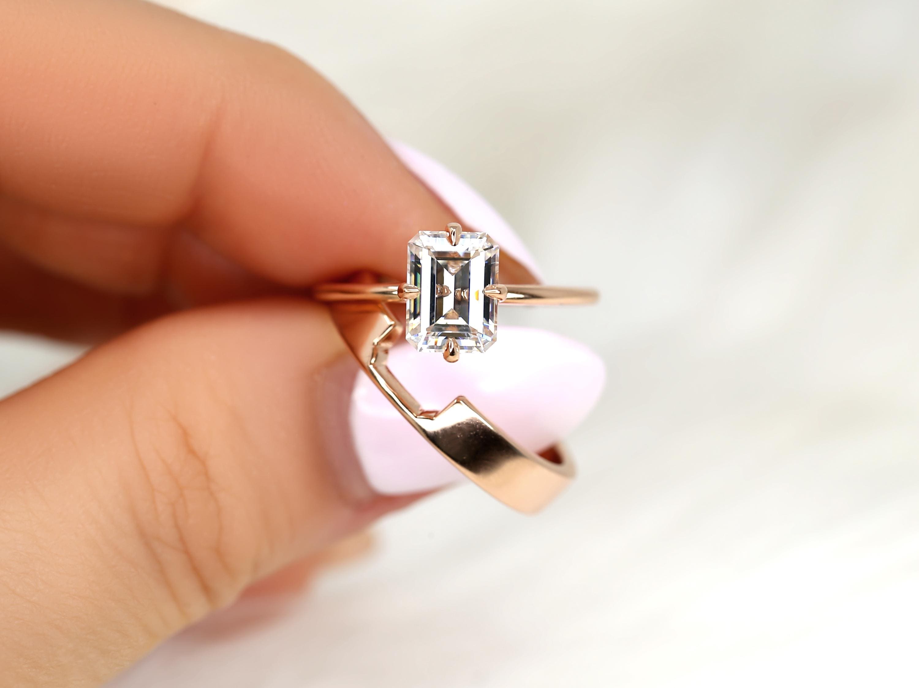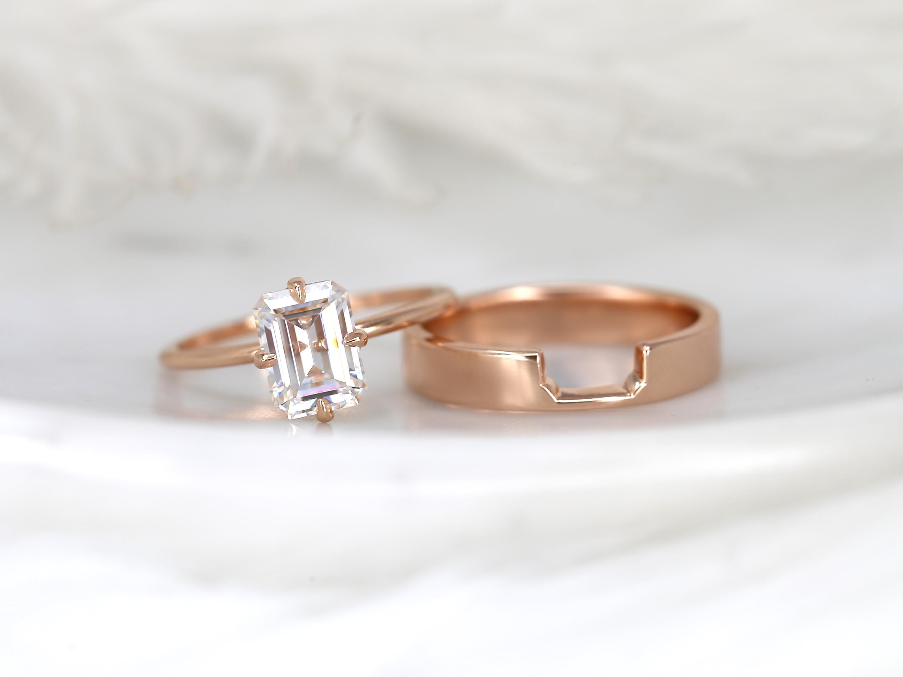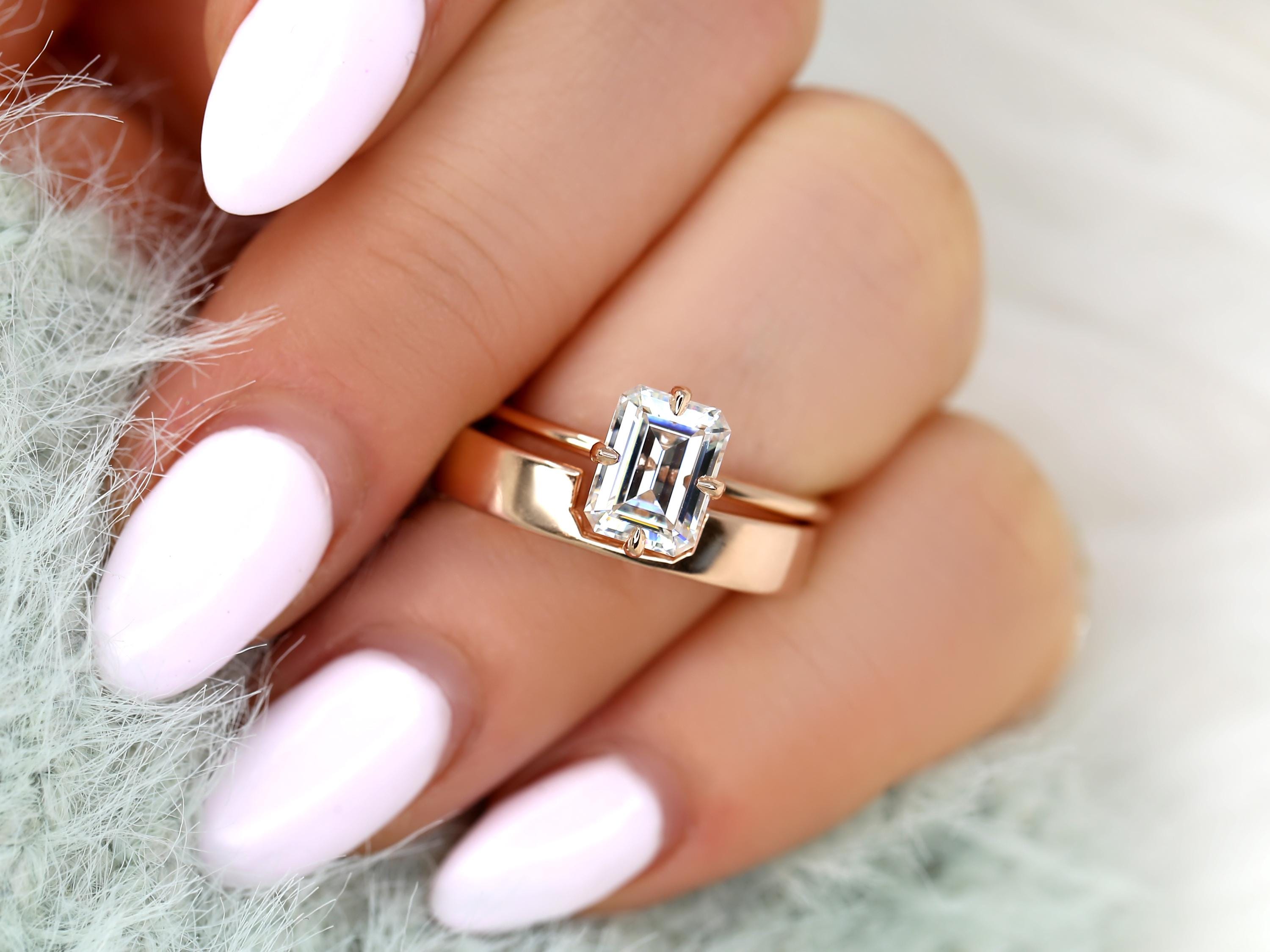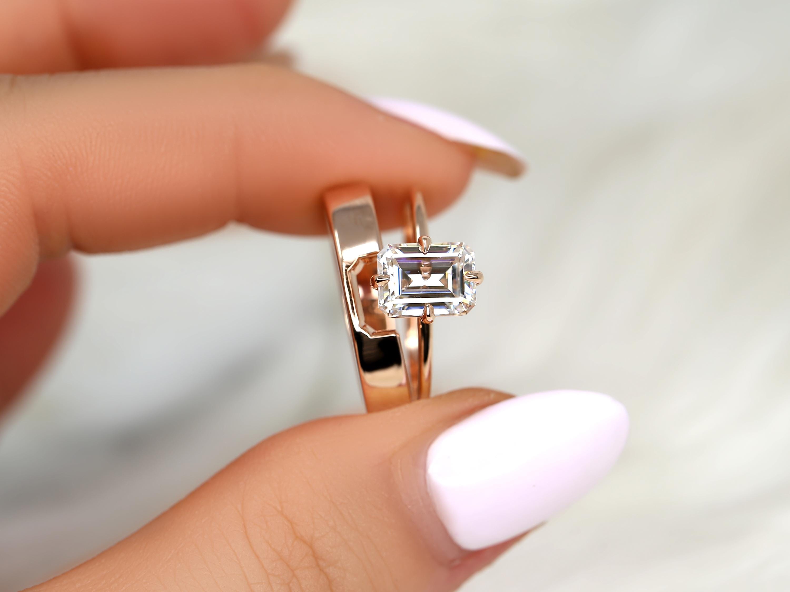 1.75ct Ruth 8x6mm & Codi 14kt Moissanite Emerald Cut Solitaire Bridal Set,Emerald Cut Wedding Ring Set,Emerald Engagement Ring Set