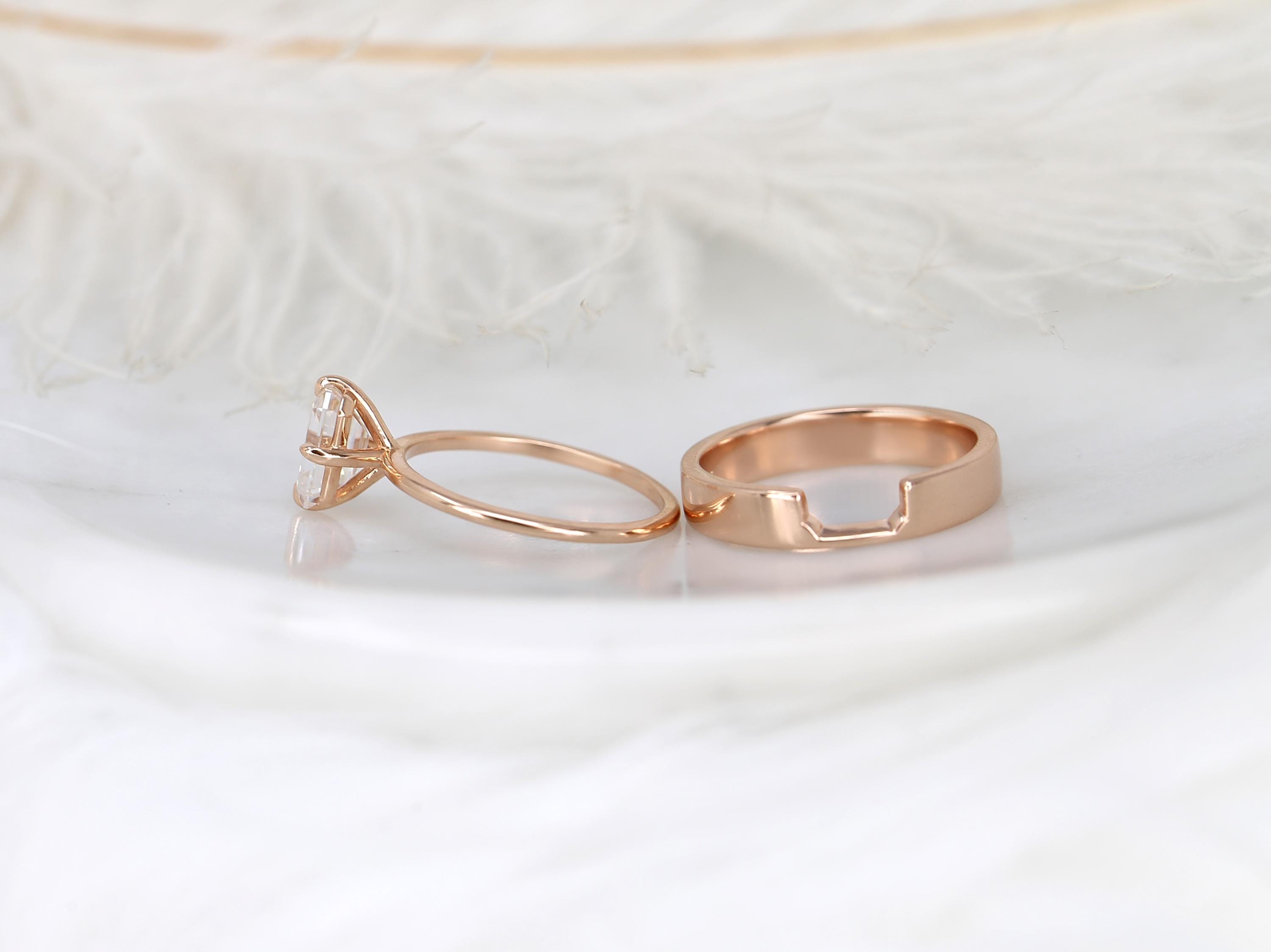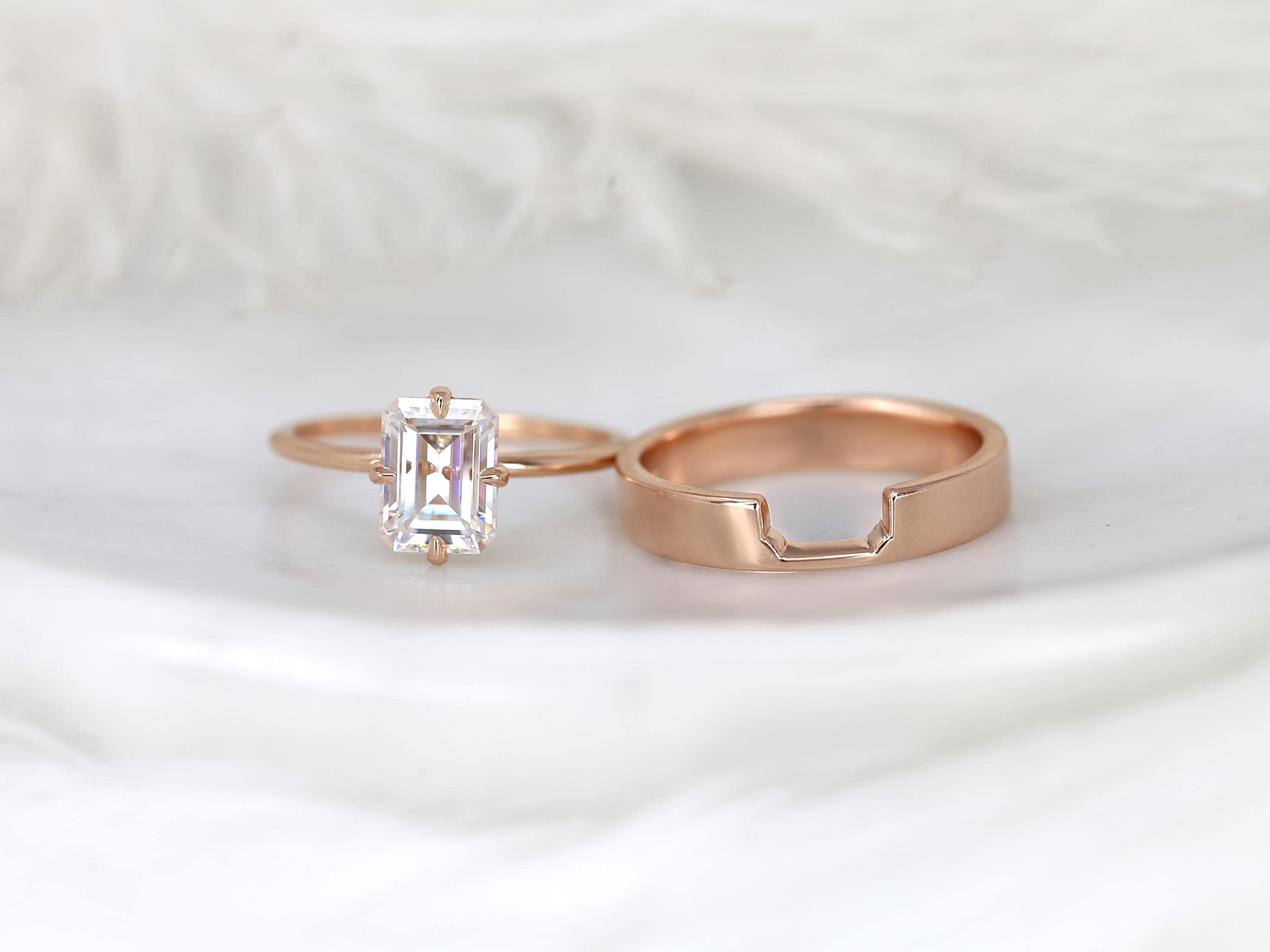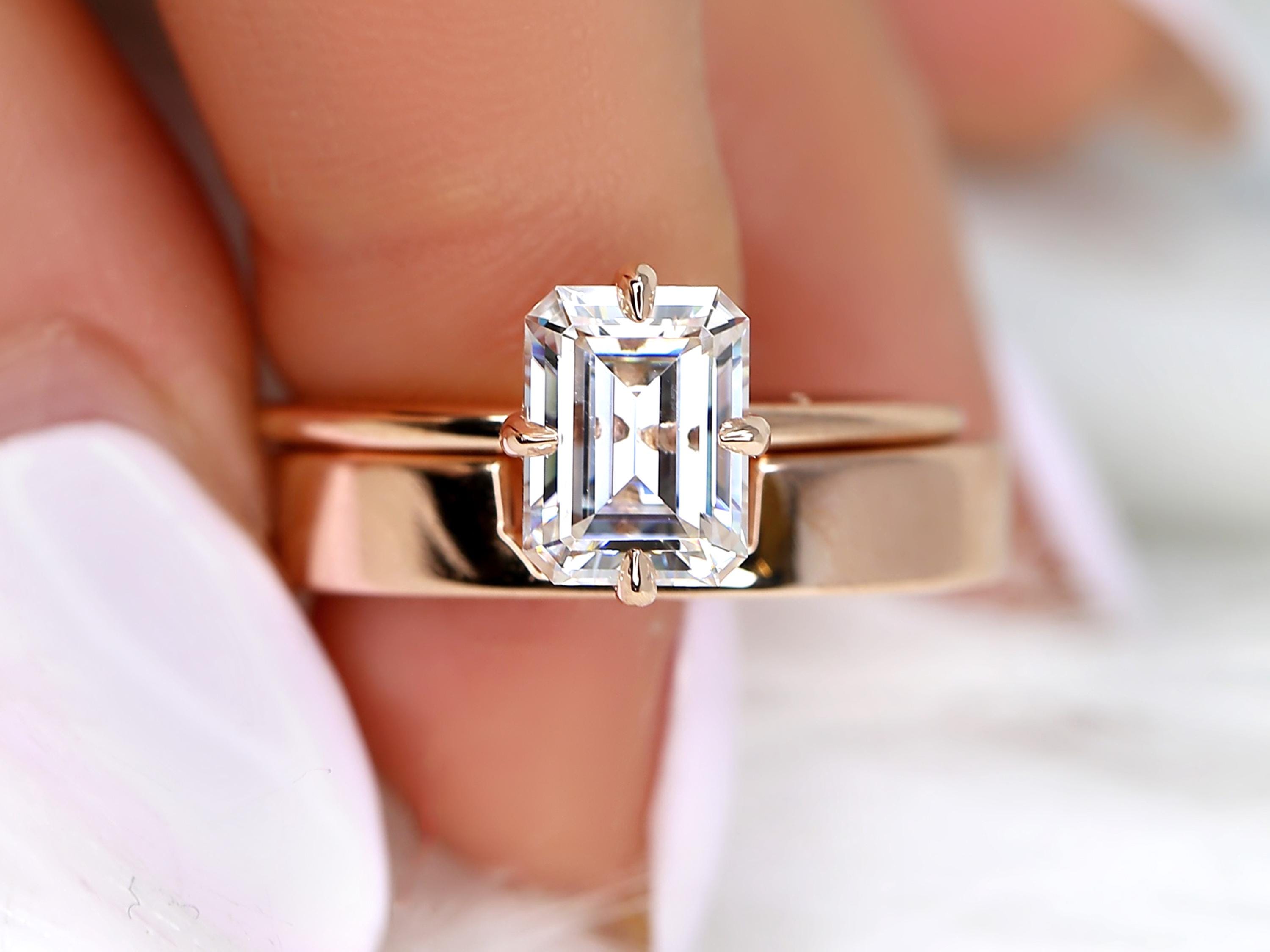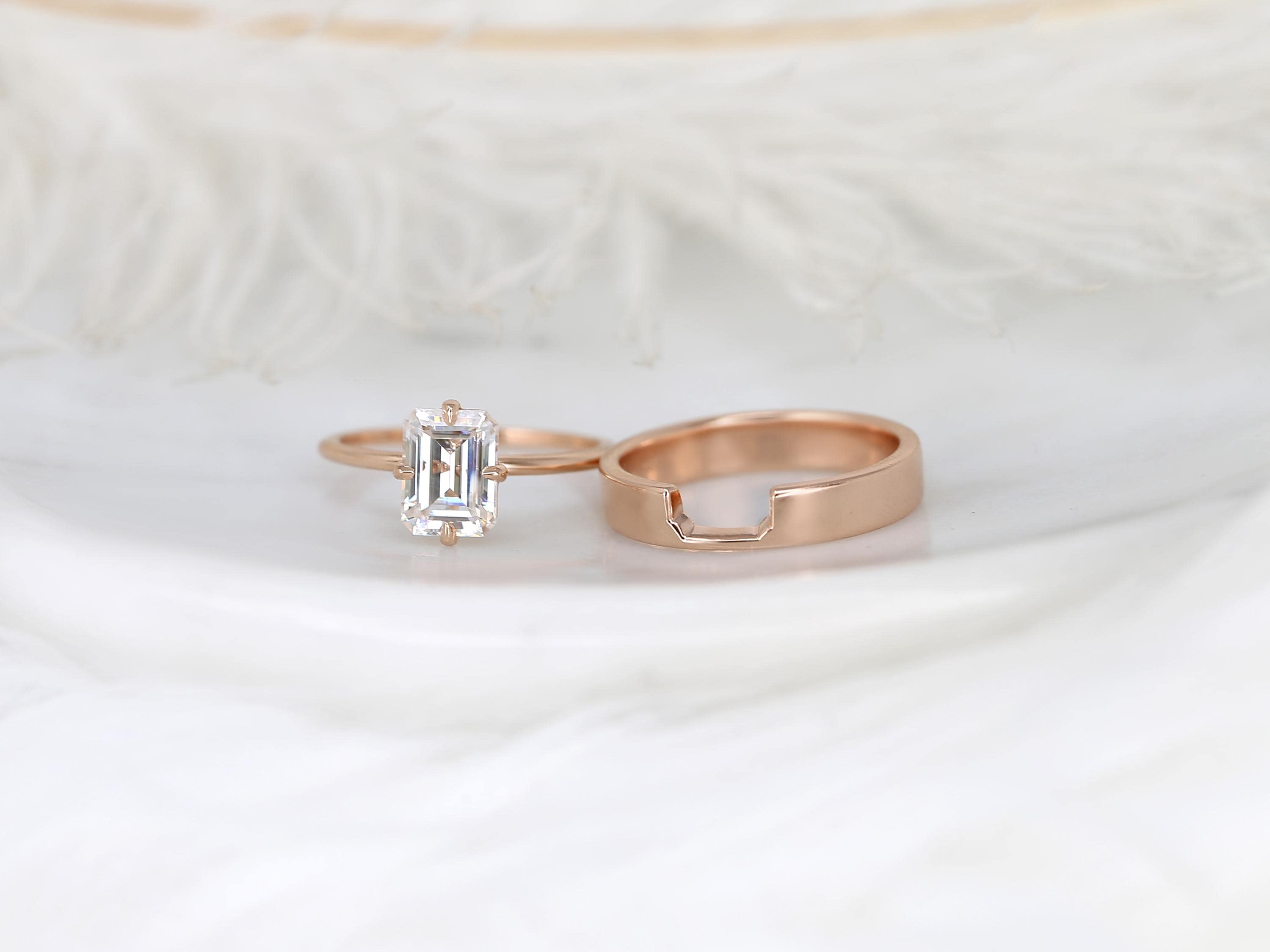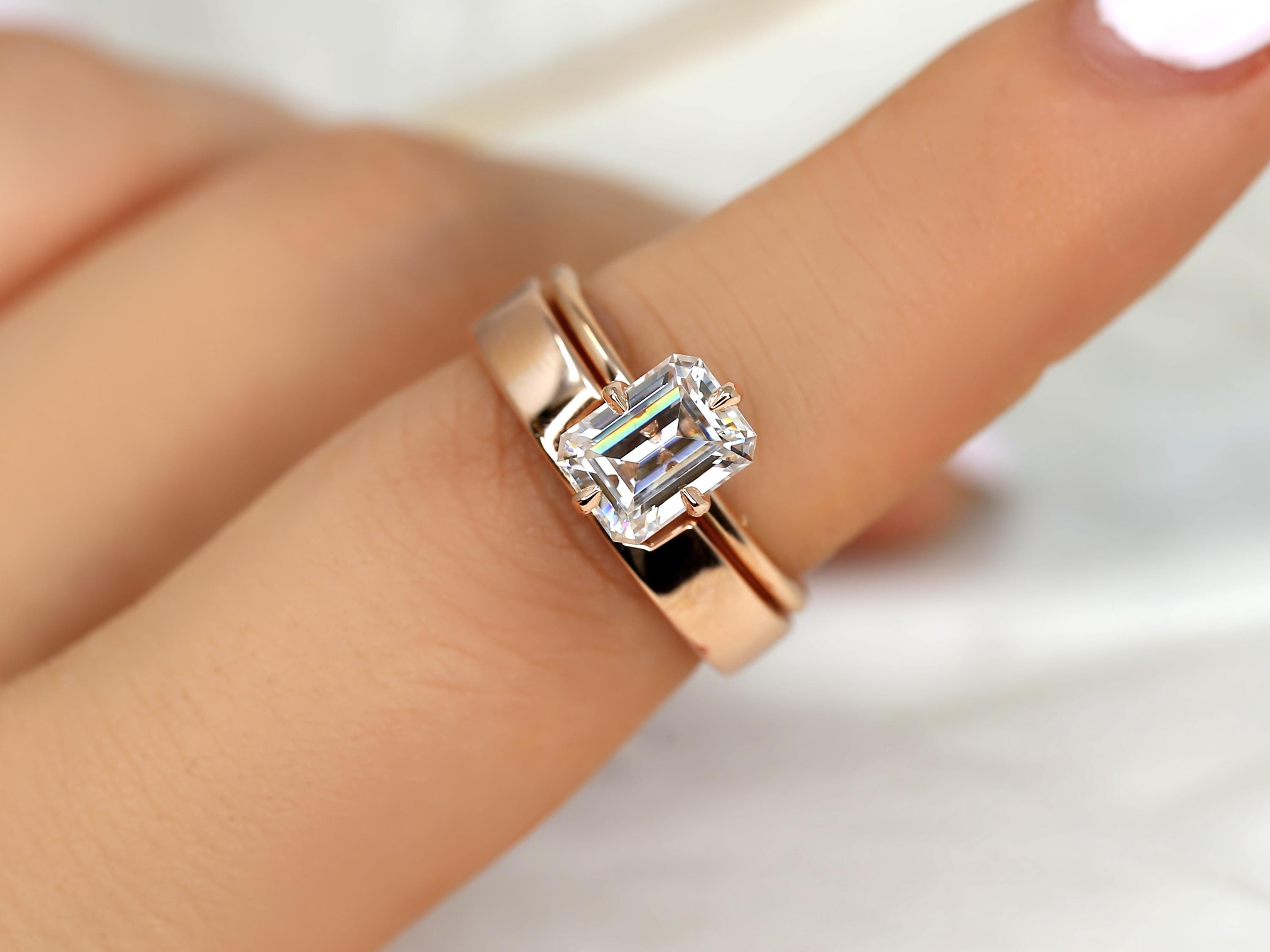1.75ct Ruth 8x6mm & Codi 14kt Moissanite Emerald Cut Solitaire Bridal Set,Emerald Cut Wedding Ring Set,Emerald Engagement Ring Set