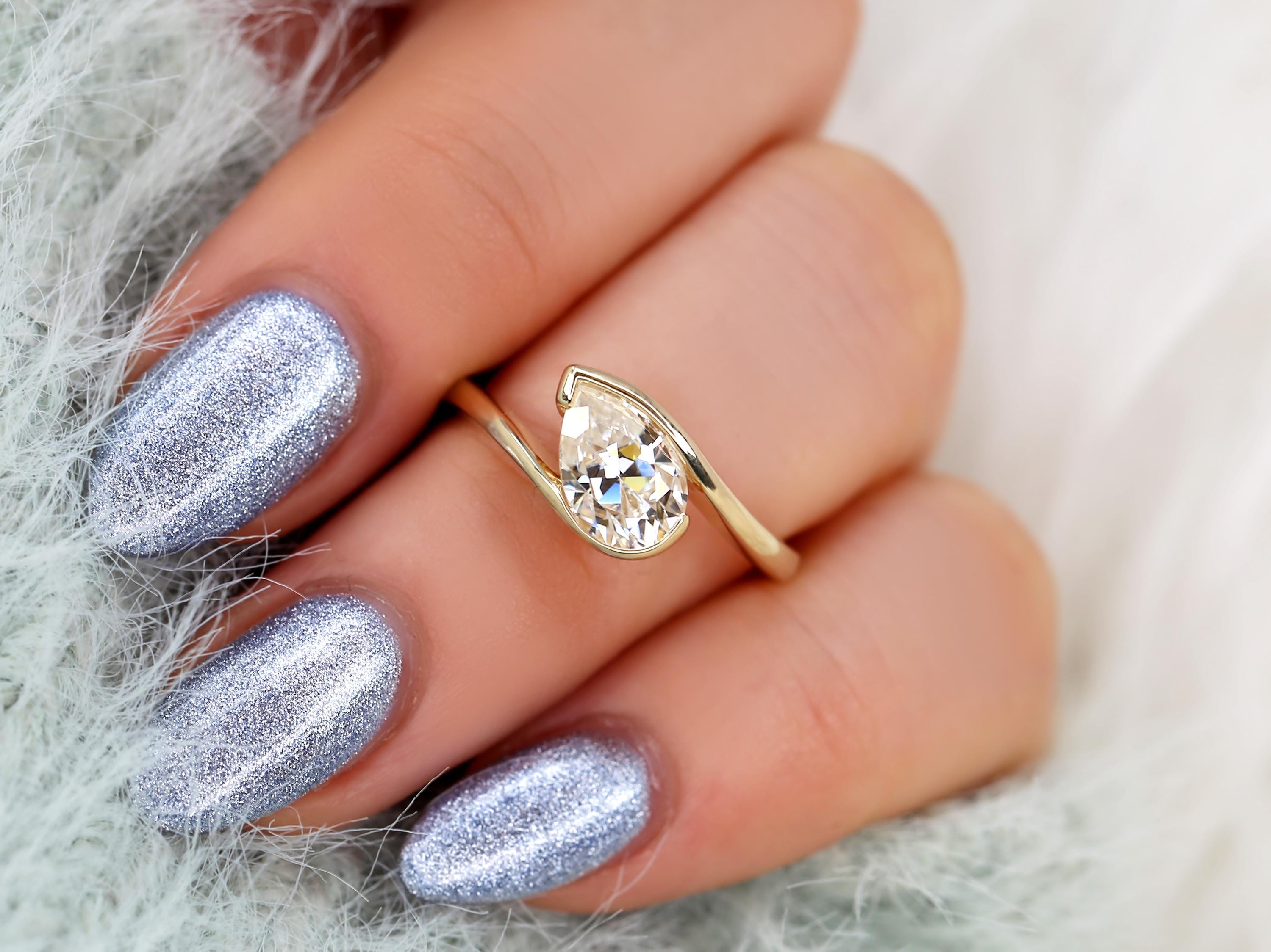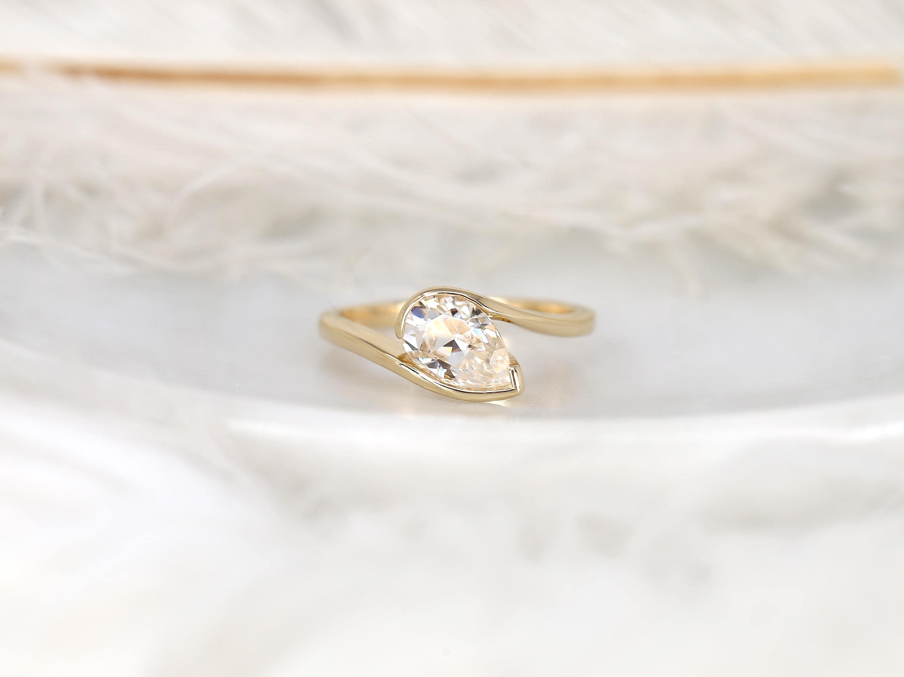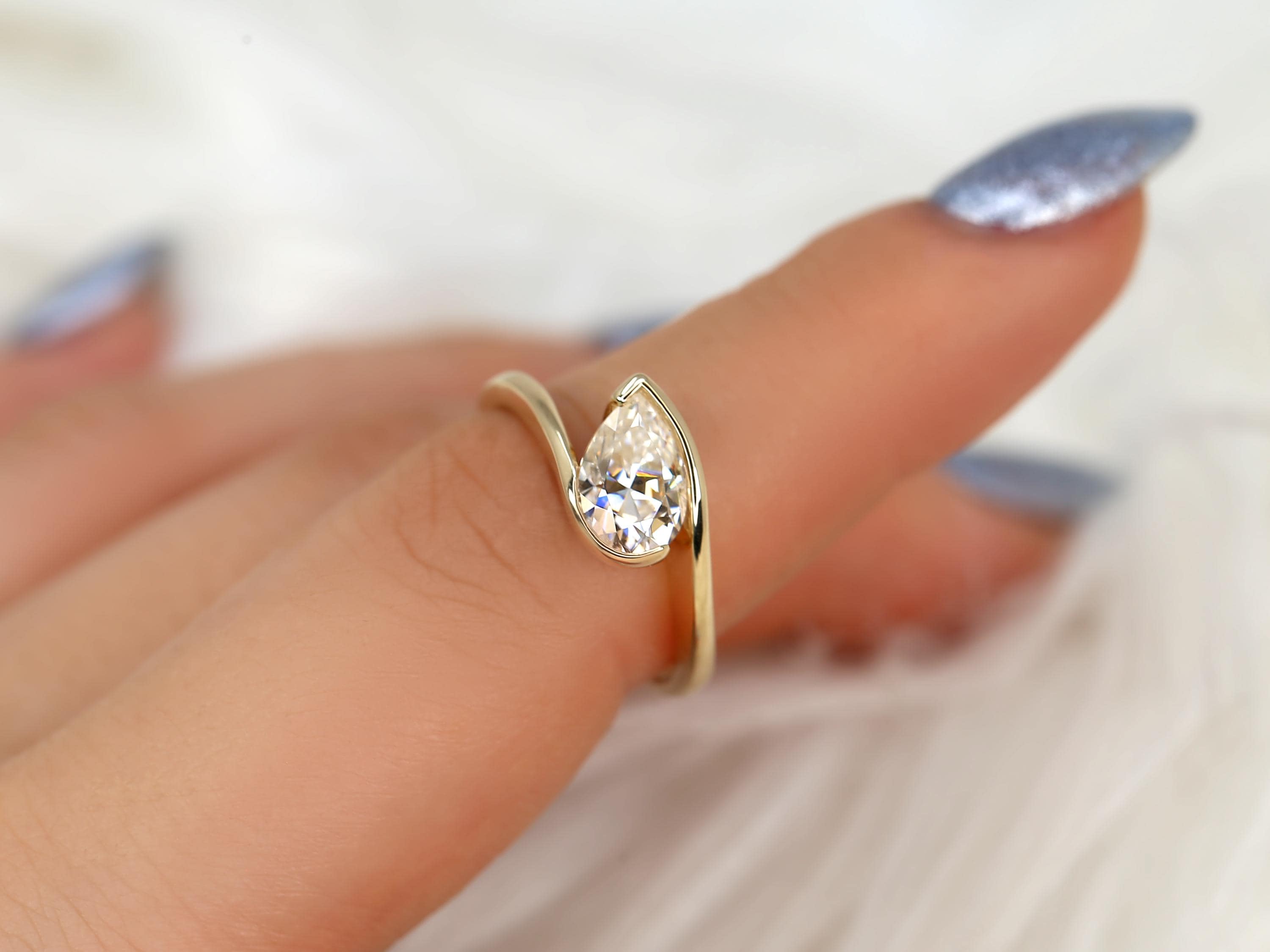 1.50ct Padme 9x6mm 14kt Moissanite Tilted Pear Solitaire Ring,Unique Pear Cut Ring,Pear Engagement Ring,Slanted Pear Ring,Anniversary Ring
