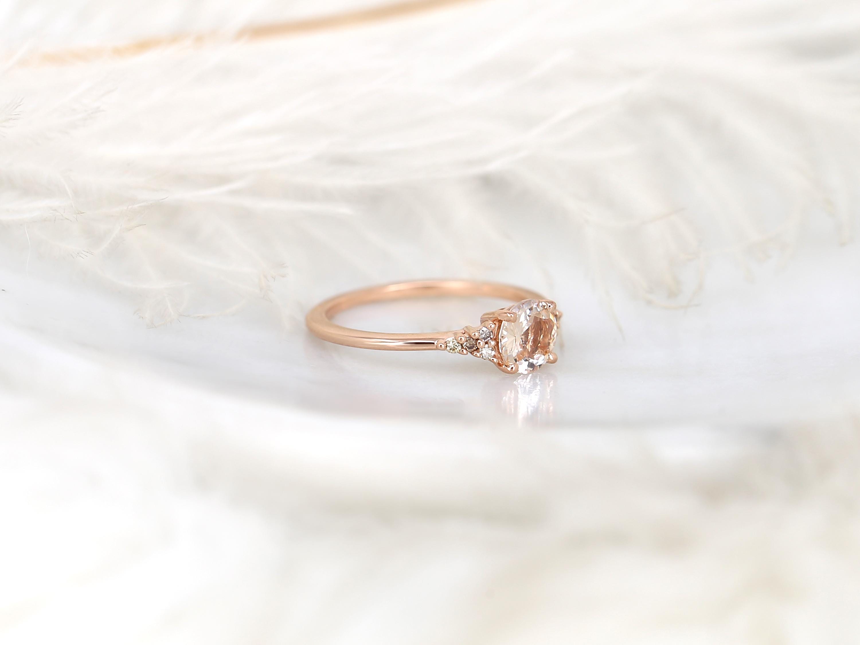 0.85ct Malia 14kt Peach Sapphire Champagne Diamond Cluster Ring,Unique Sapphire Ring,Birthday Gift,September Birthstone,Anniversary Ring