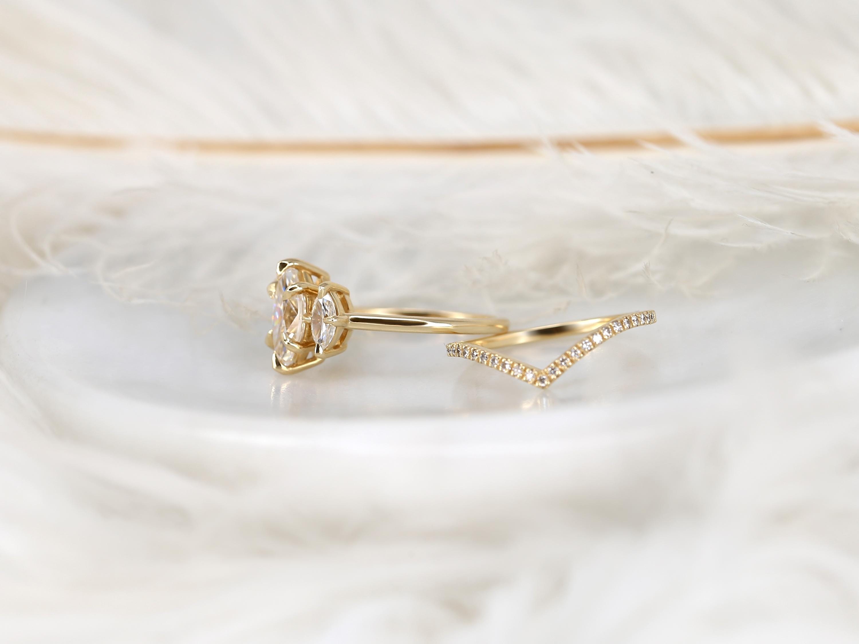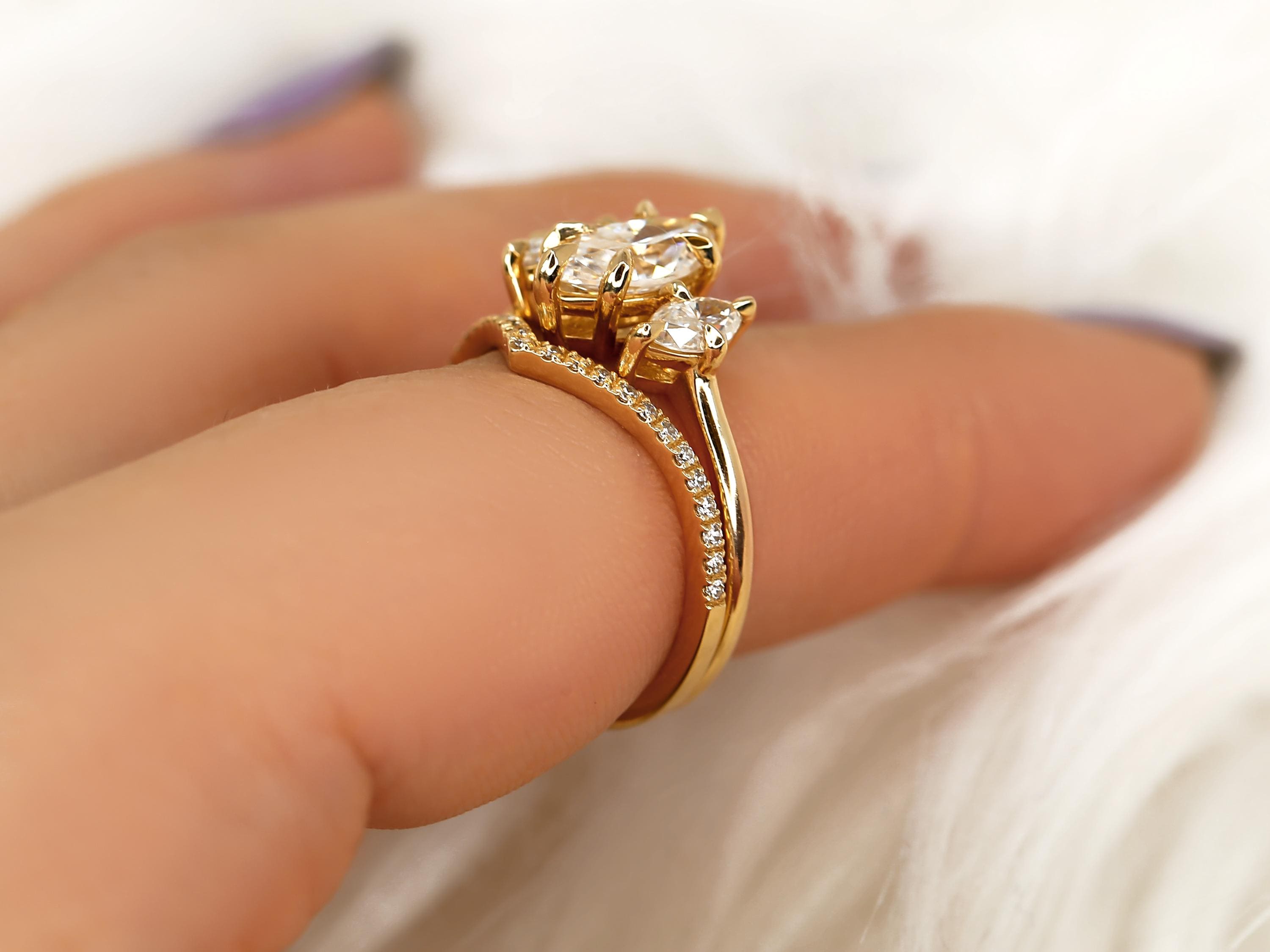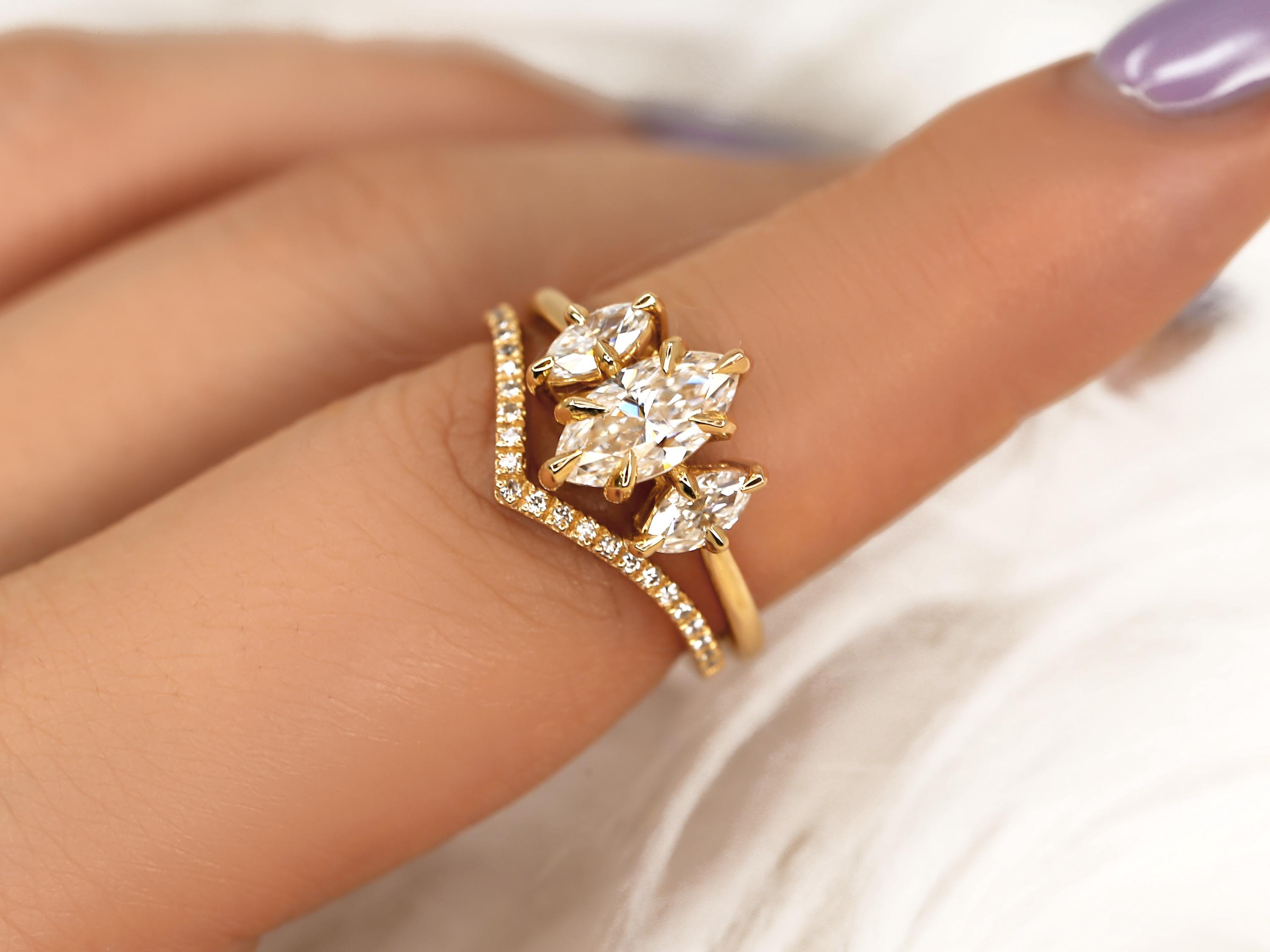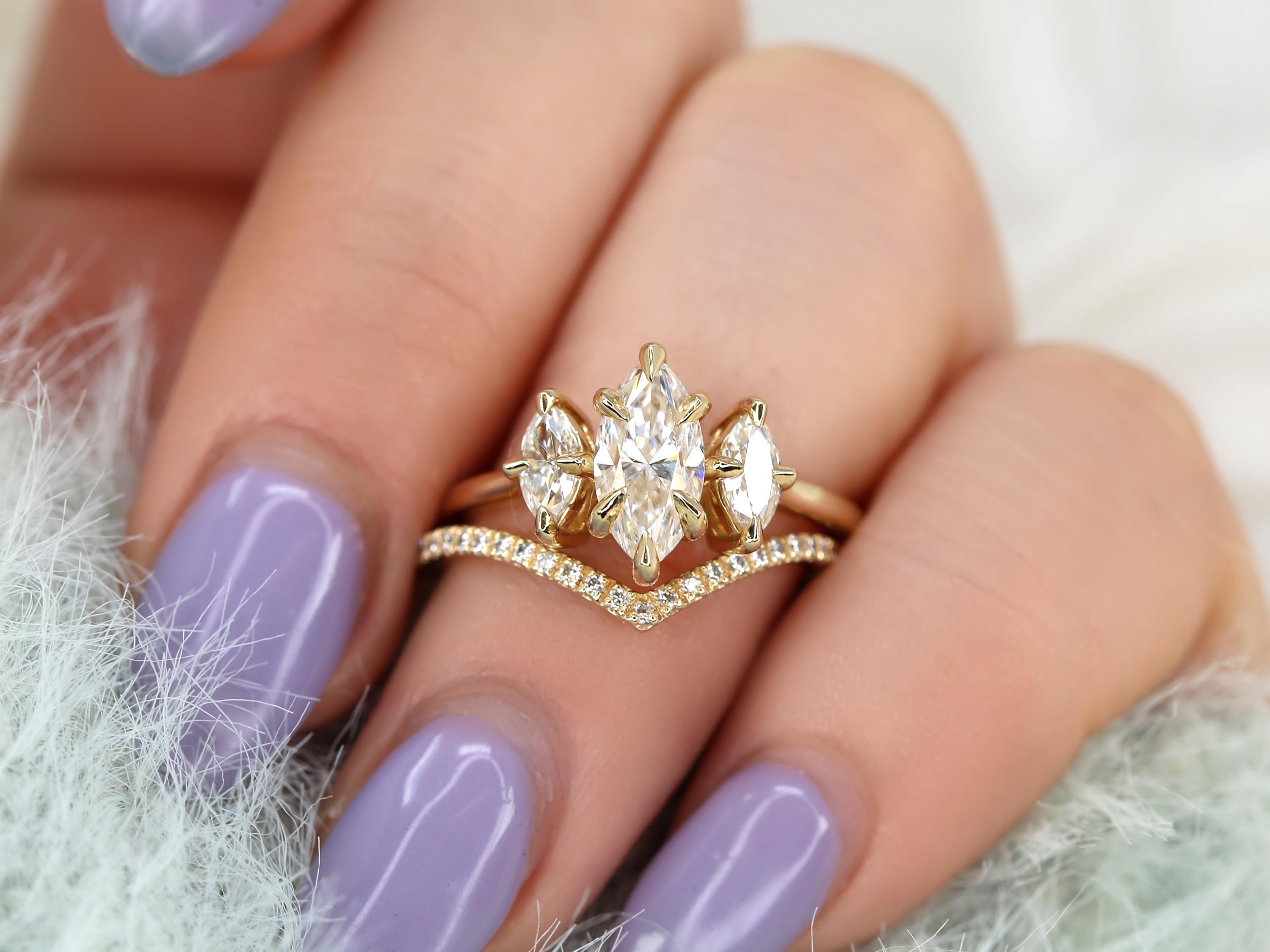 1.50ct Beckett 10x5mm & Chevy 14kt Moissanite Diamond Marquise Three Stone Bridal Set,Marquise Trilogy Wedding Ring Set,Unique Marquise Ring