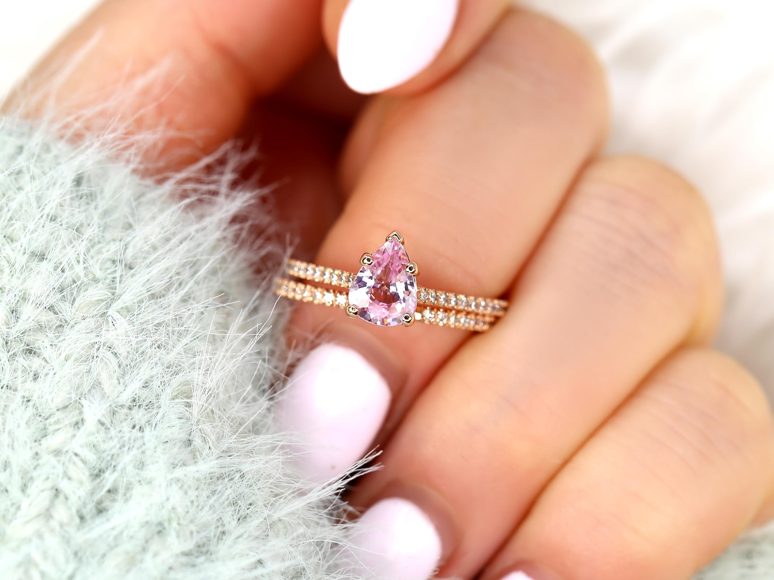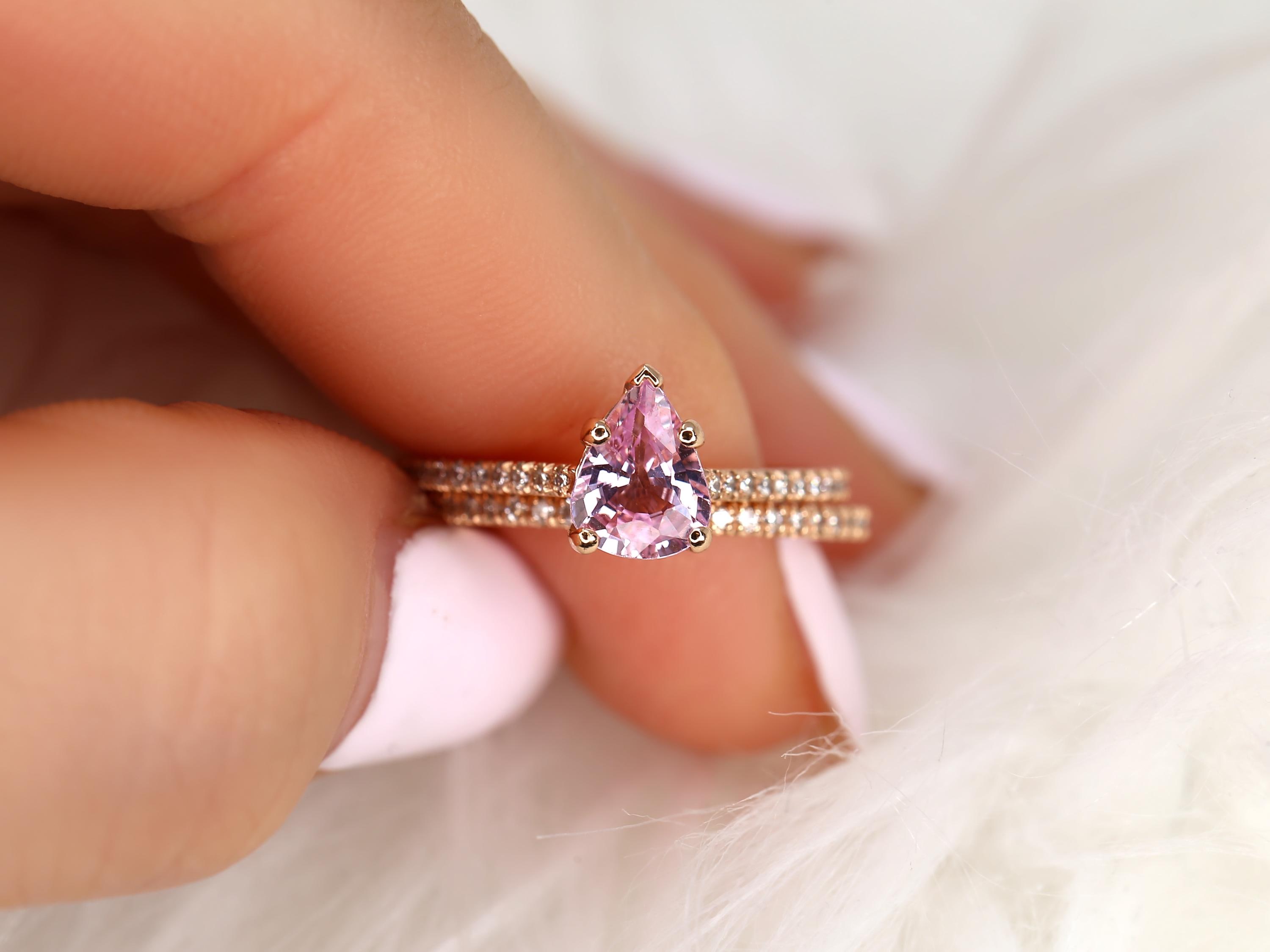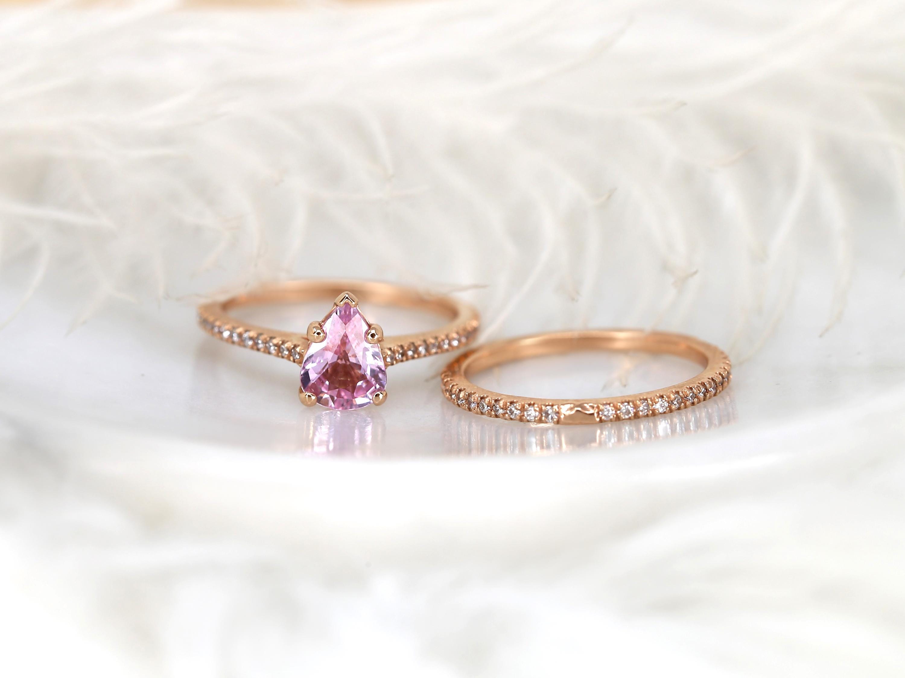 1.09ct Ann 14kt Blush Sapphire Diamond Pear Bridal Set,Unique Sapphire Ring,Pear Wedding Ring Set,Anniversary Ring,September Birthstone Ring