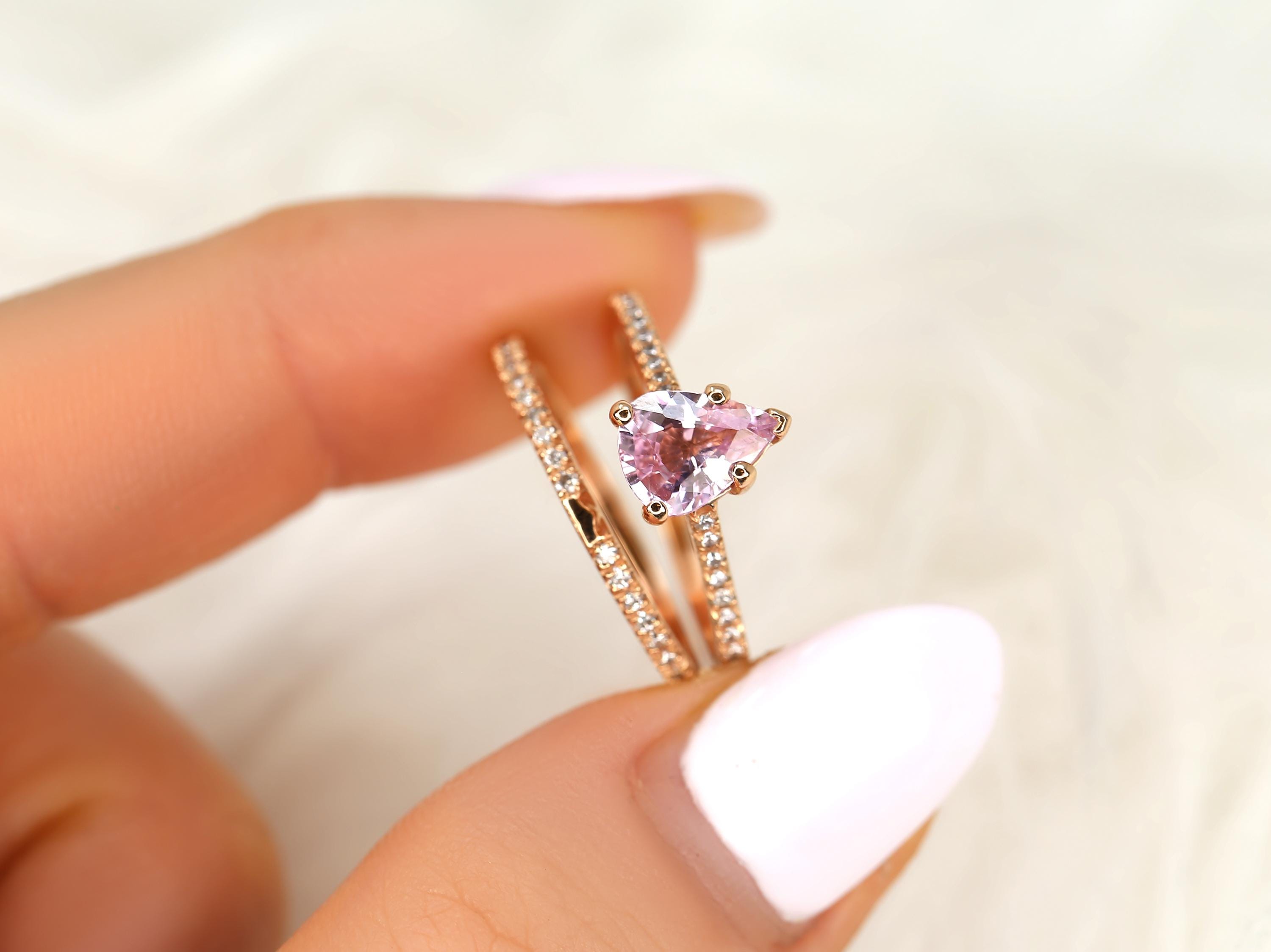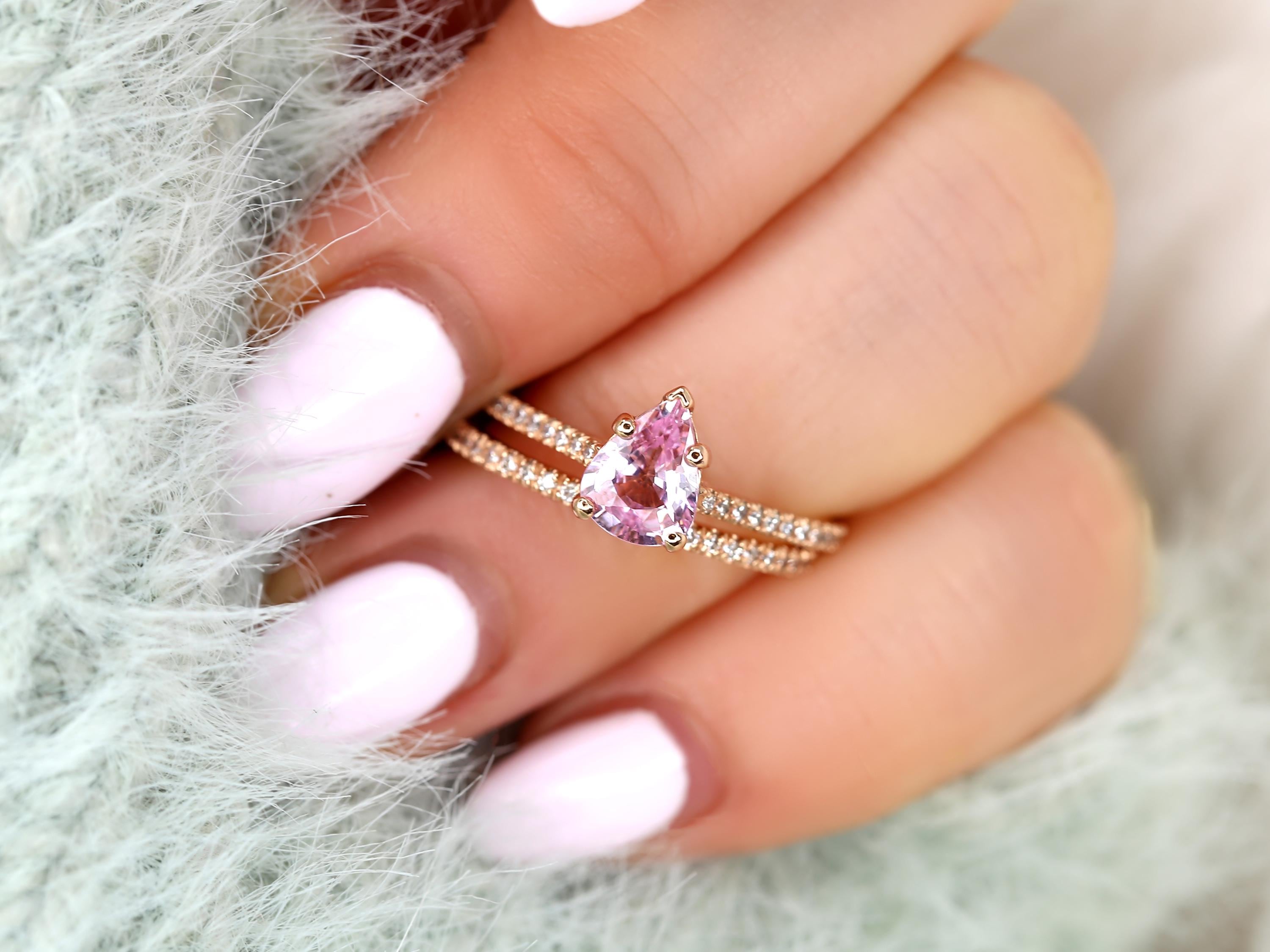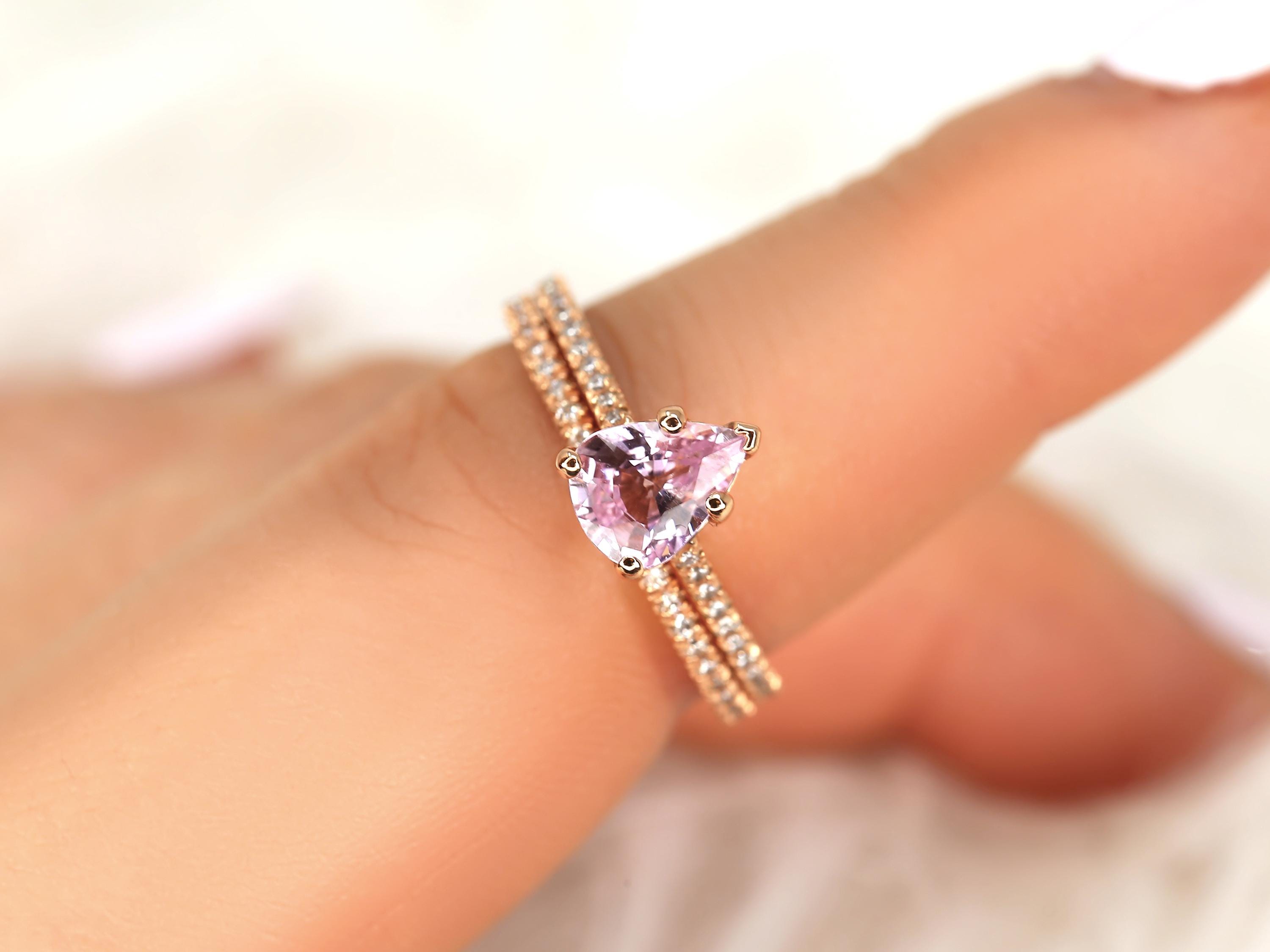 1.09ct Ann 14kt Blush Sapphire Diamond Pear Bridal Set,Unique Sapphire Ring,Pear Wedding Ring Set,Anniversary Ring,September Birthstone Ring
