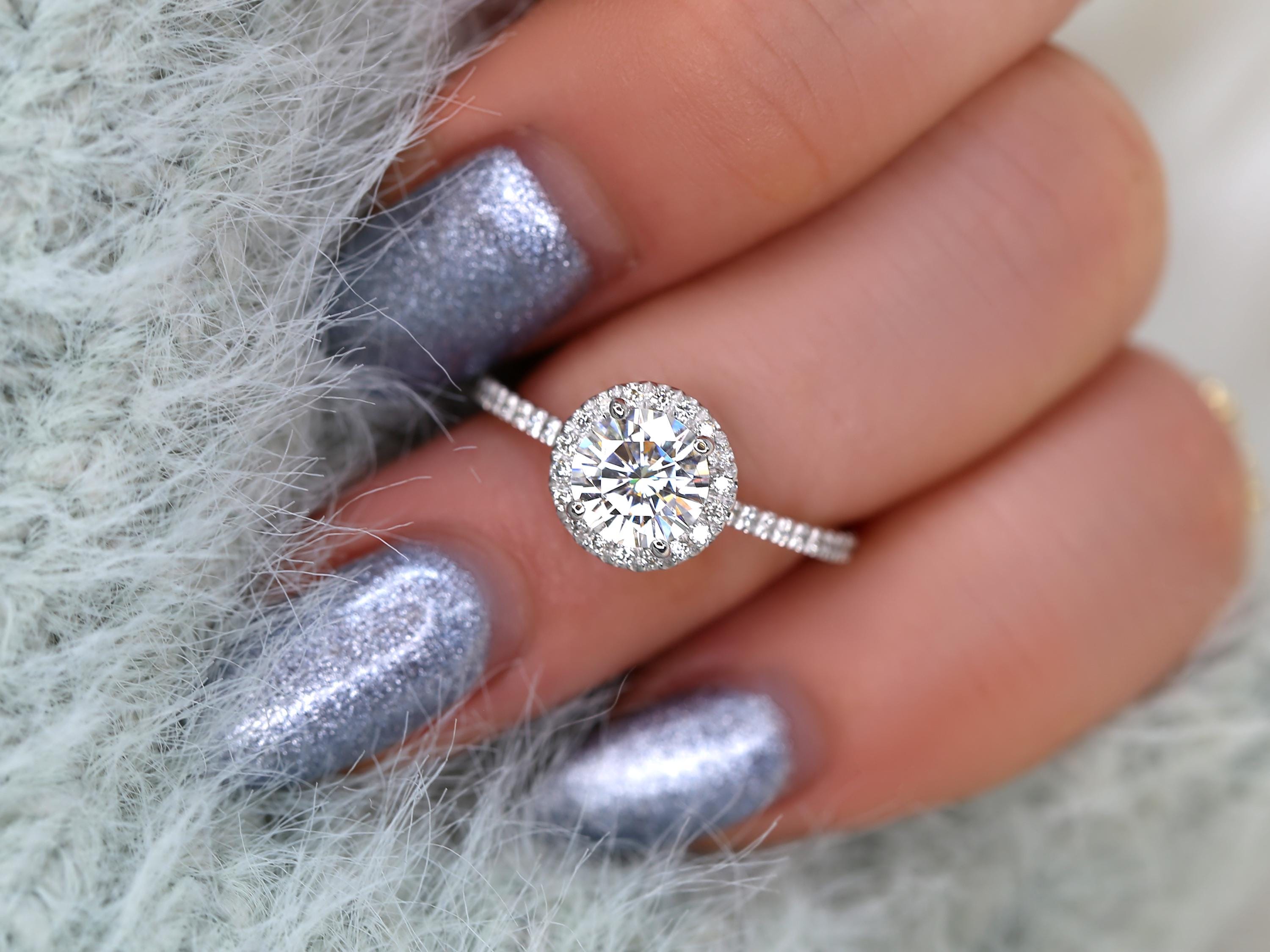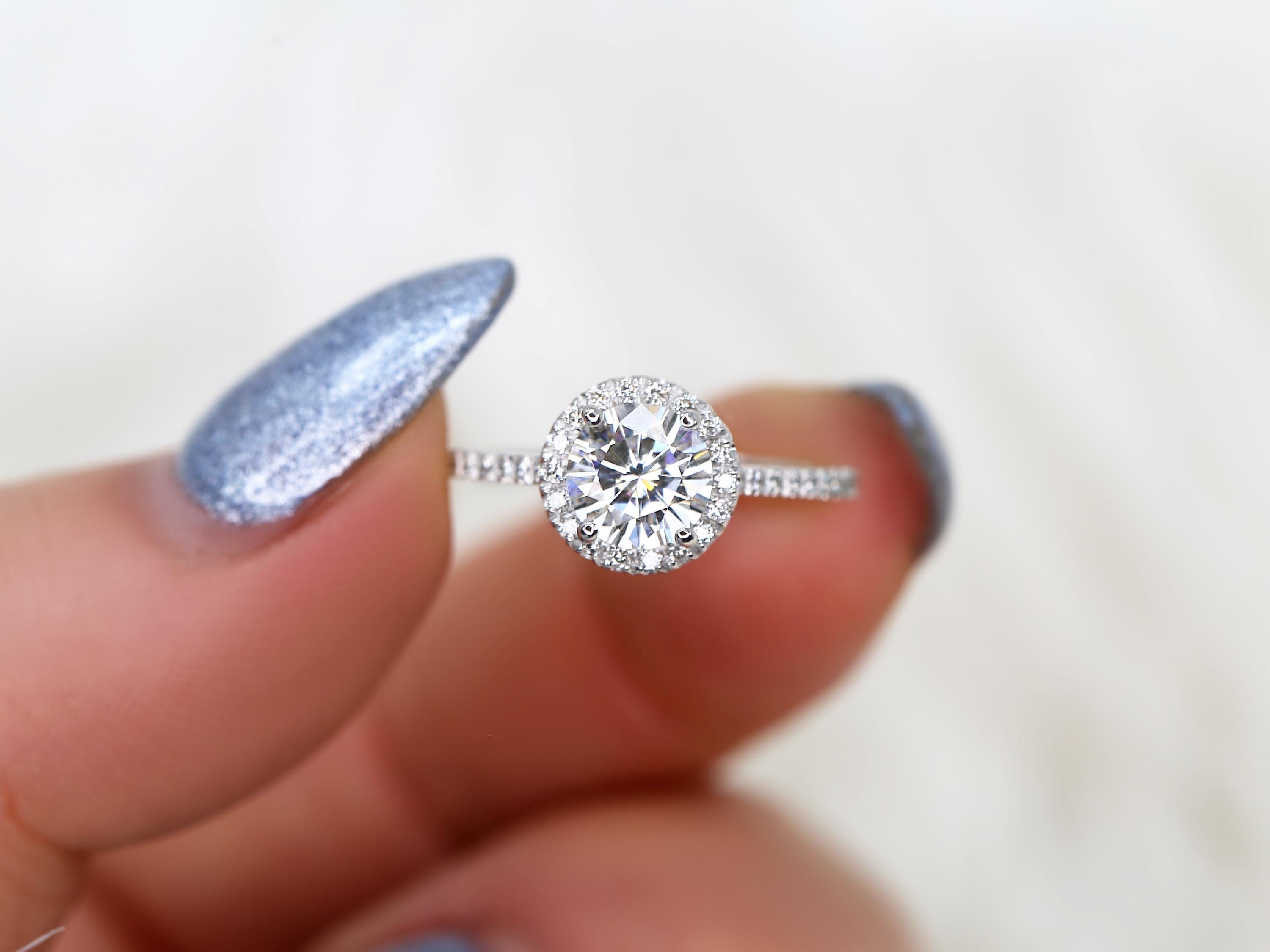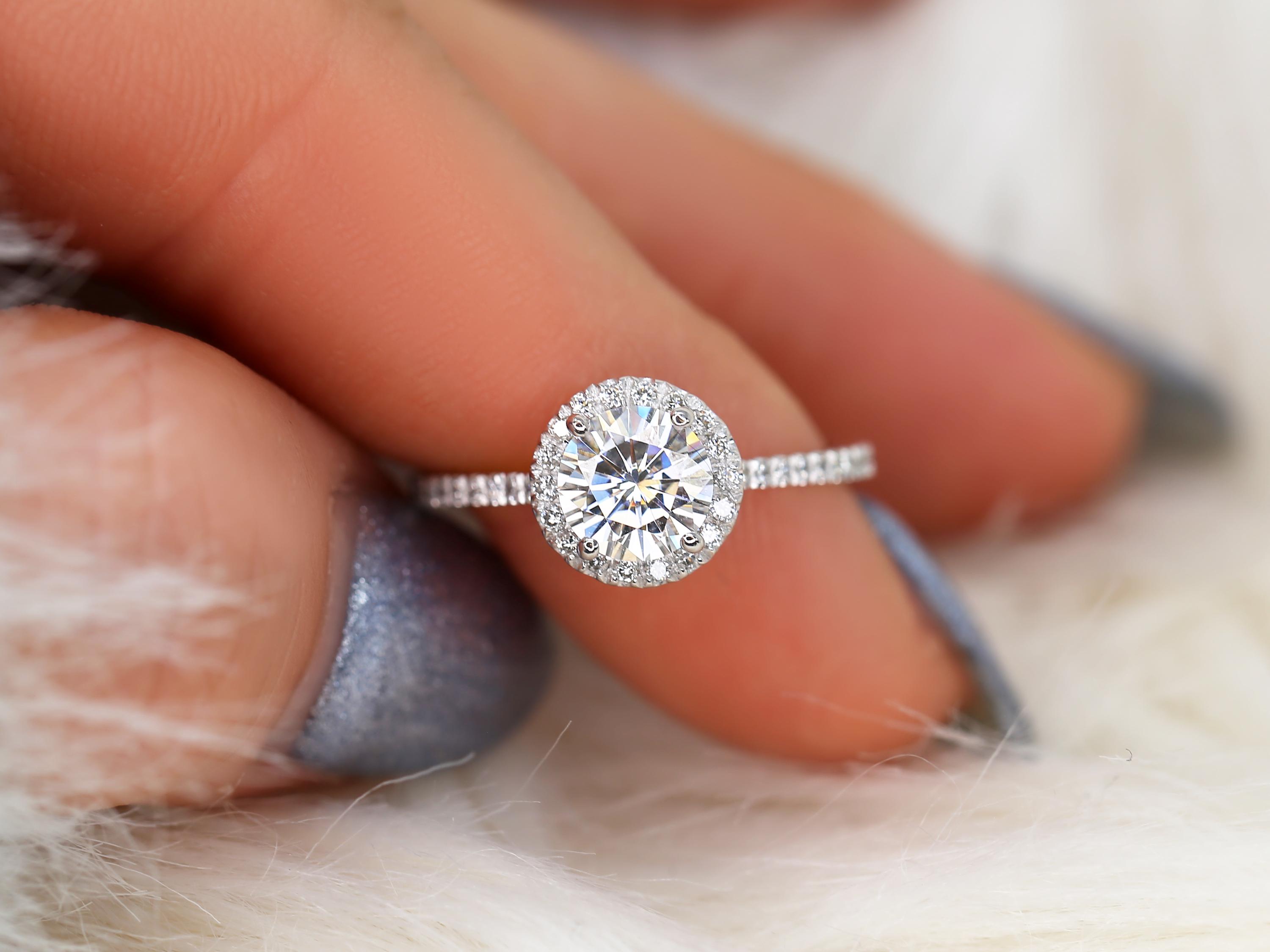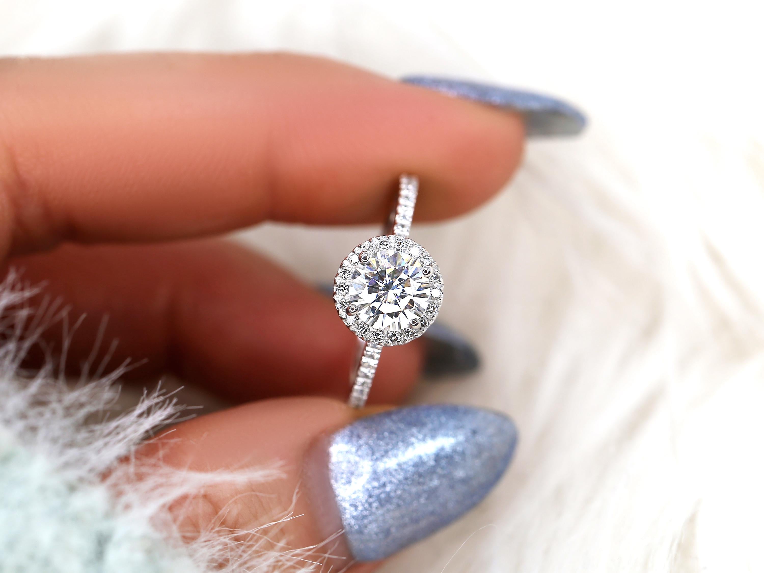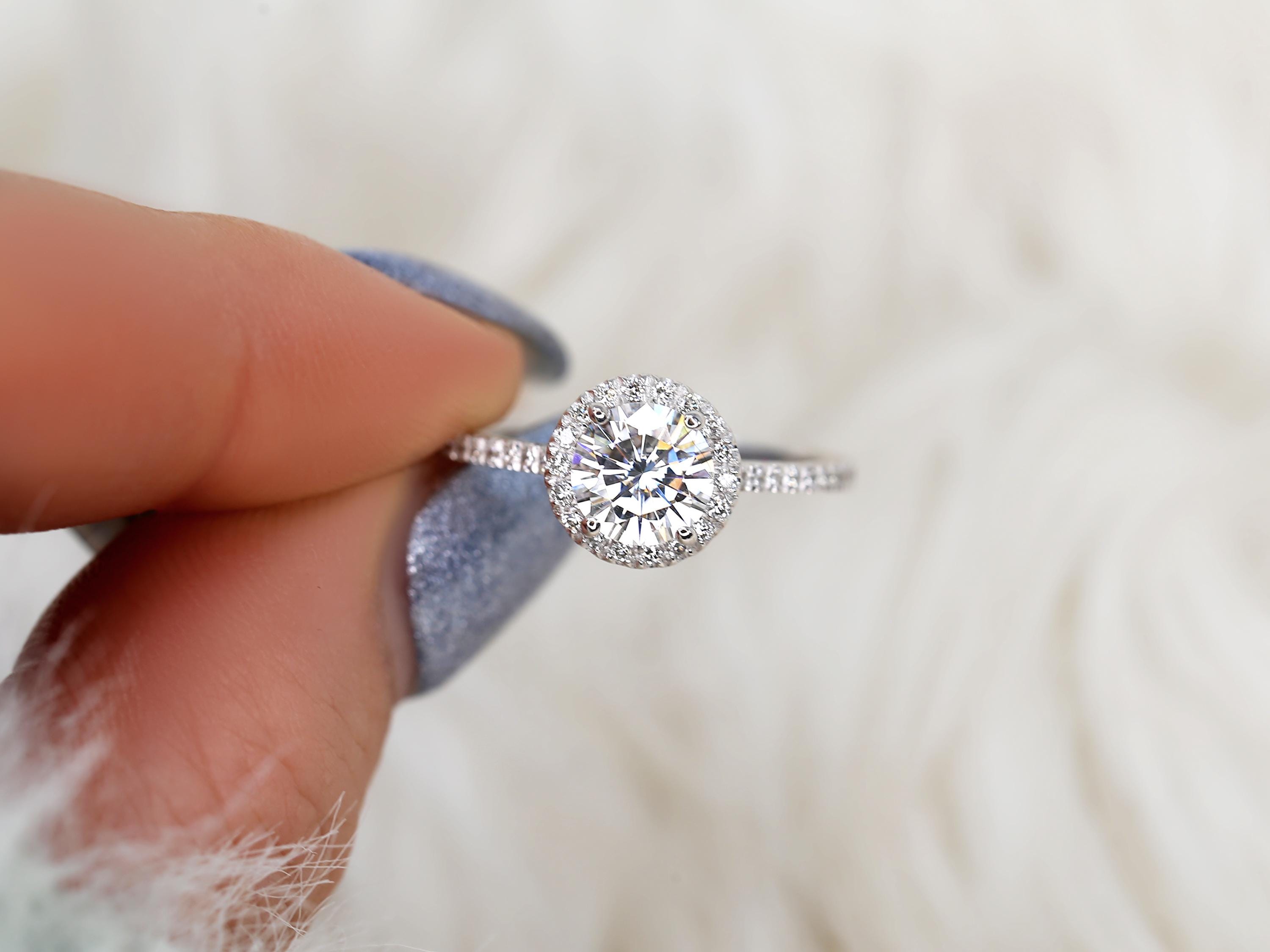 1ct SALE Kimberly 6.5mm Platinum FB Moissanite Diamond Halo Engagement Ring,Round Halo Ring,Moissanite Wedding Ring,Round Moissanite Ring